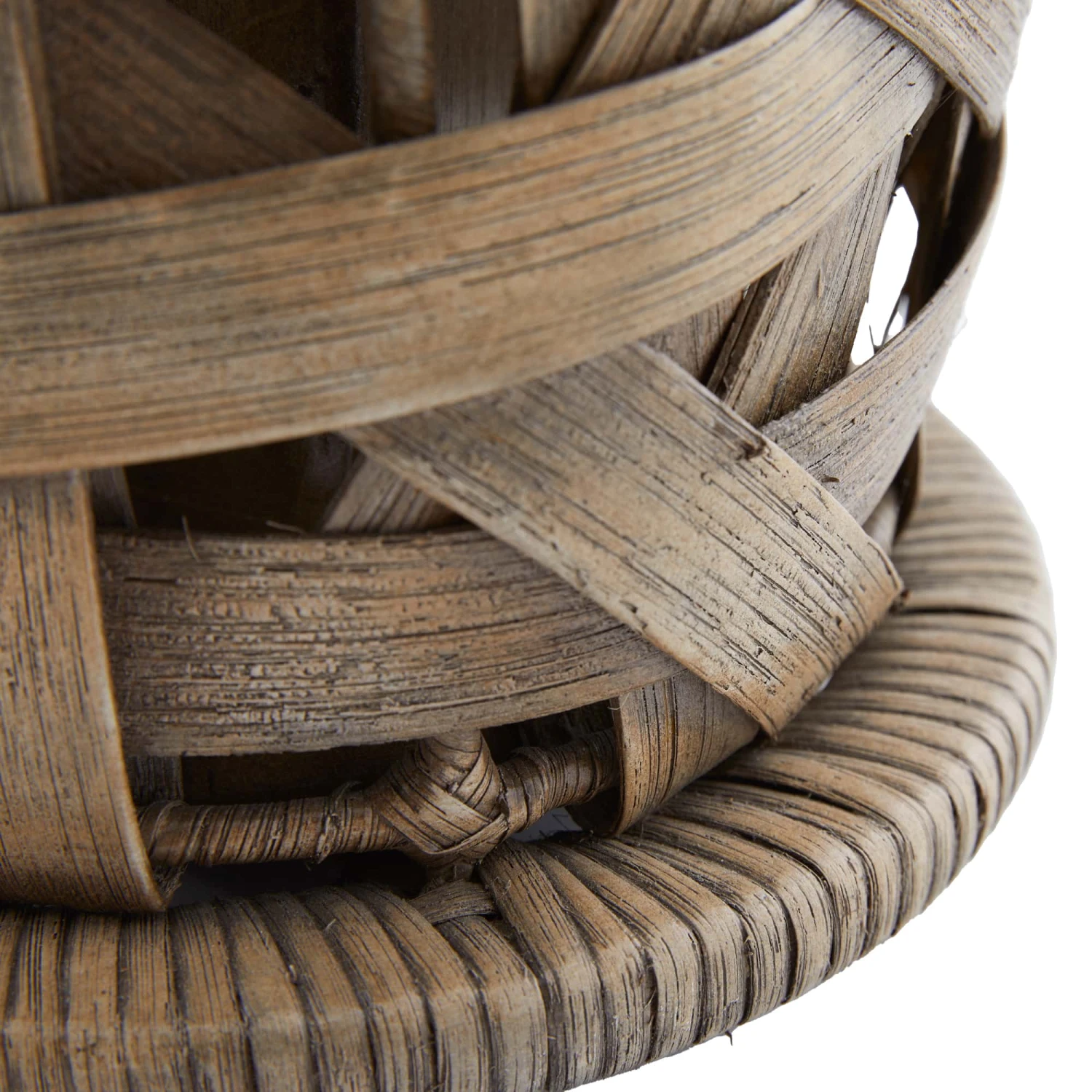 The Horatio Floor Lamp adds a decorative look of nature to your interior space,. The rattan body resembles a birds nest and is topped with a drum shaped linen shade. Three-way switch is located on the lamp socket.