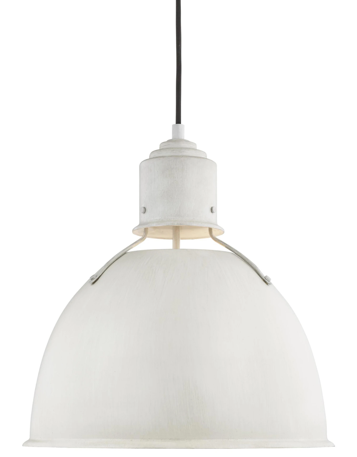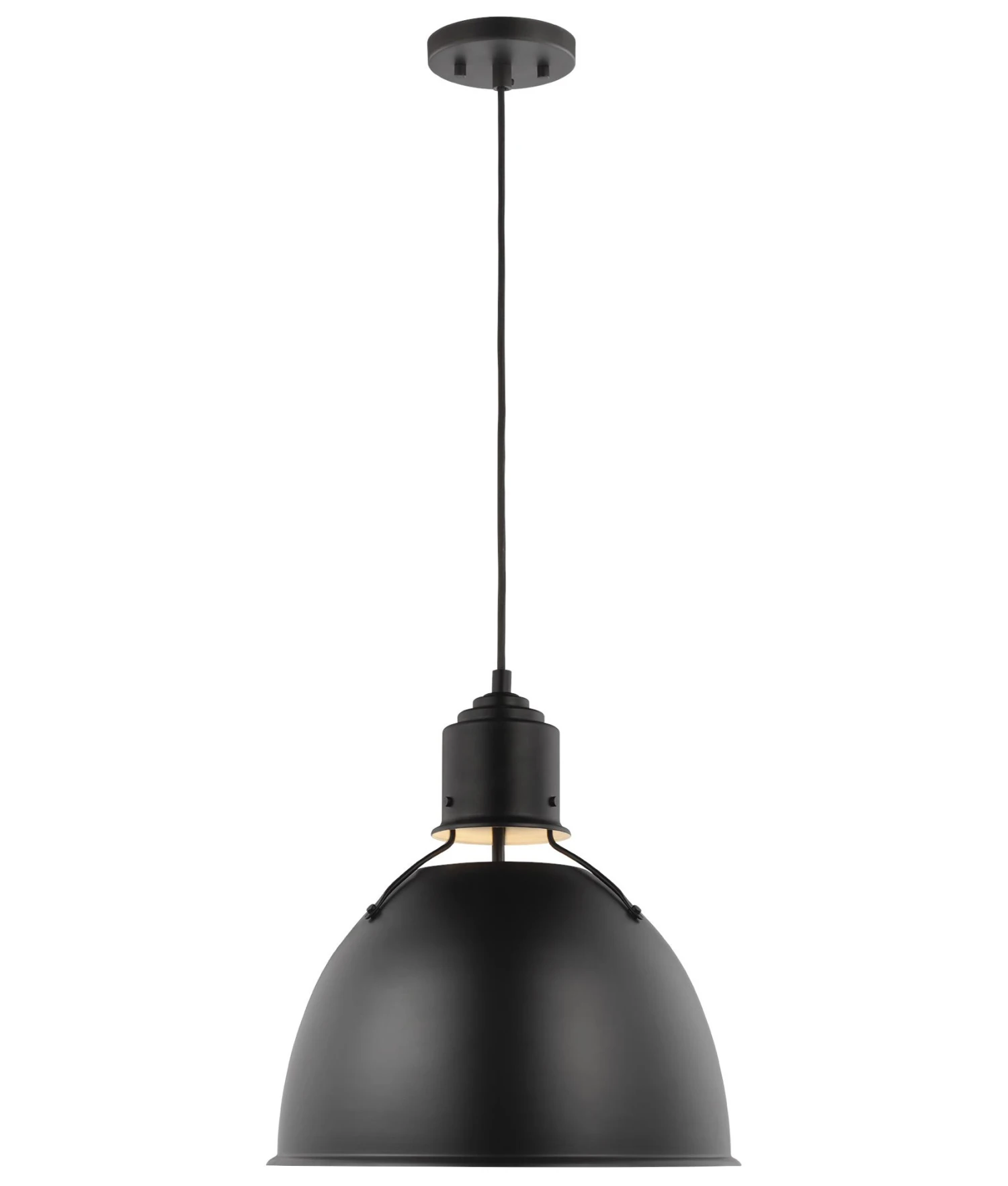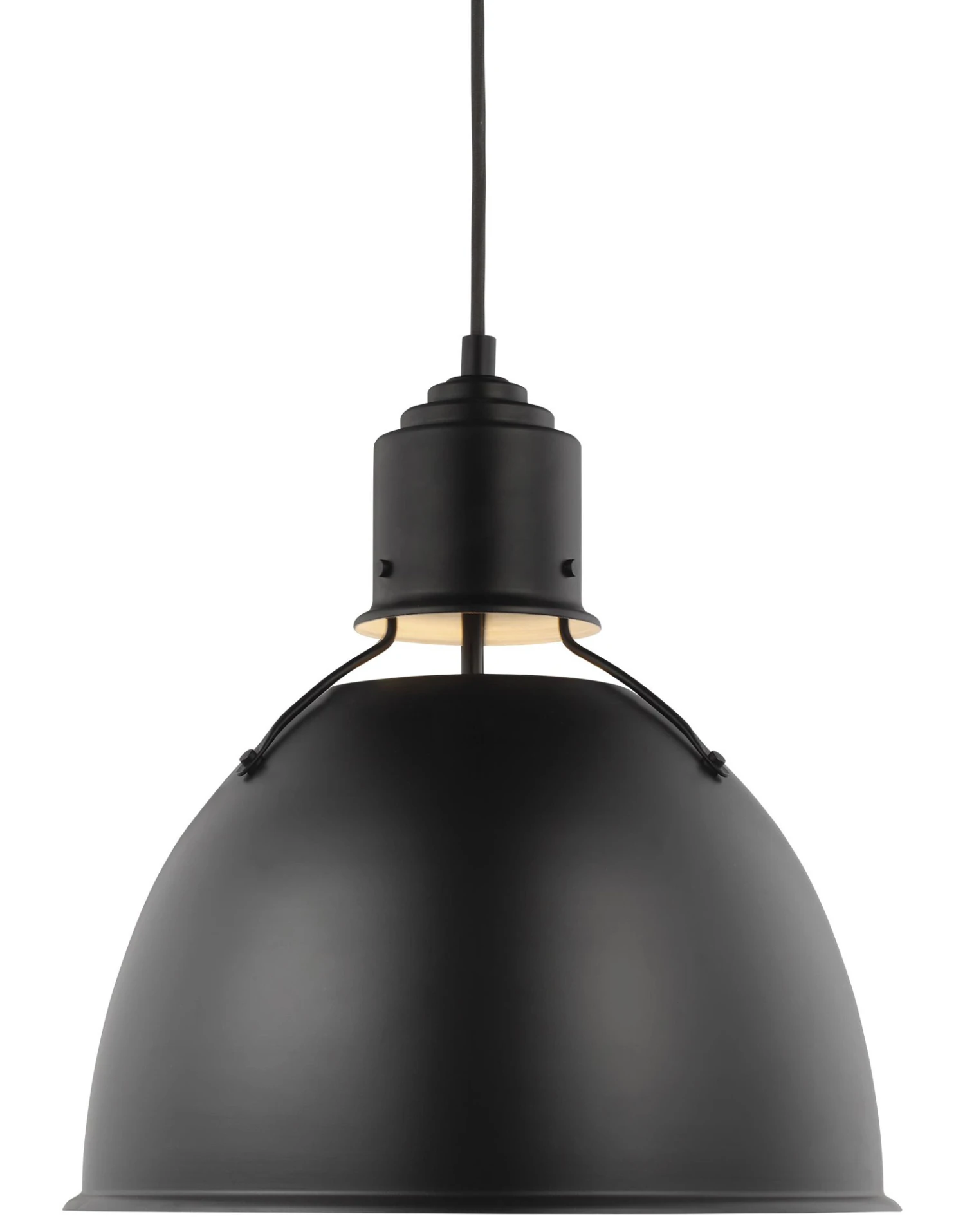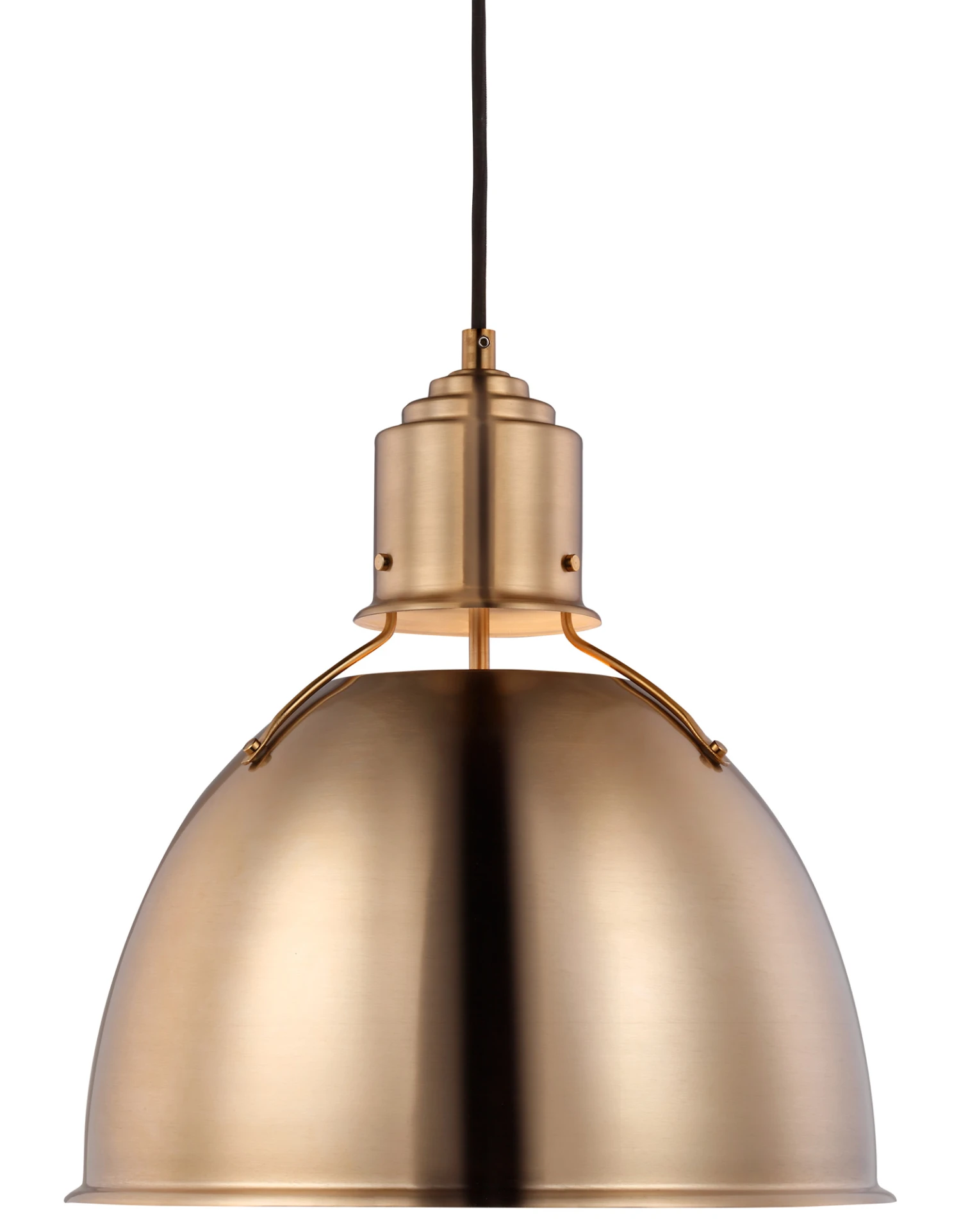 The Huey Pendant brings a clean industrial vibe to your interior space. The dome shaped shade opened at the top and seems to be held by a claw, allowing light from both directions. Available in Brushed Nickel, Satin Brass, Midnight Black, and Antique White finishes. Sloped ceiling mounting hardware included. Canopy: 4.875 inch diameter. Damp location rated. ETL listed