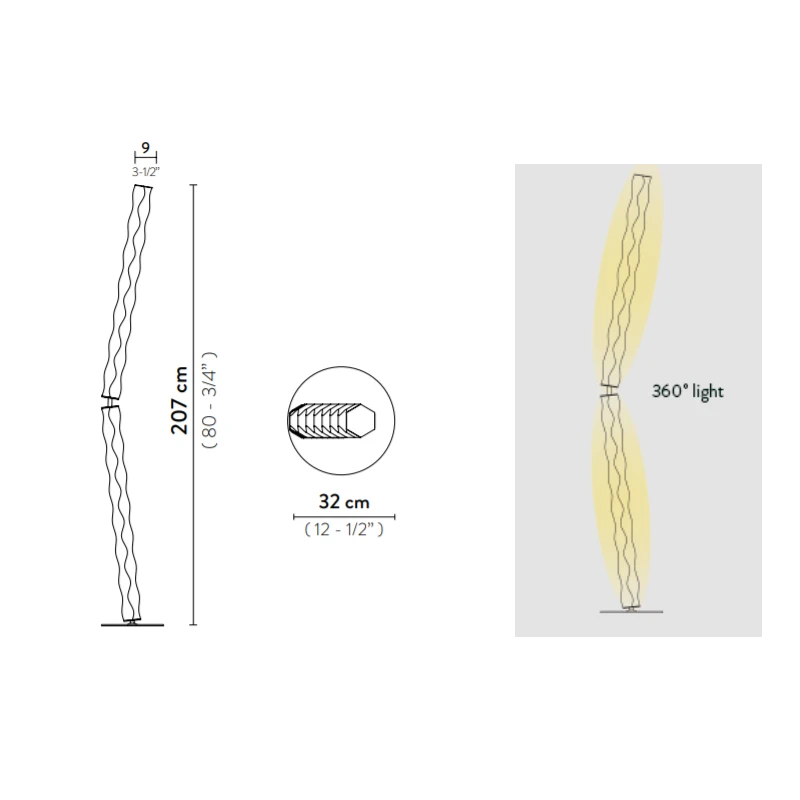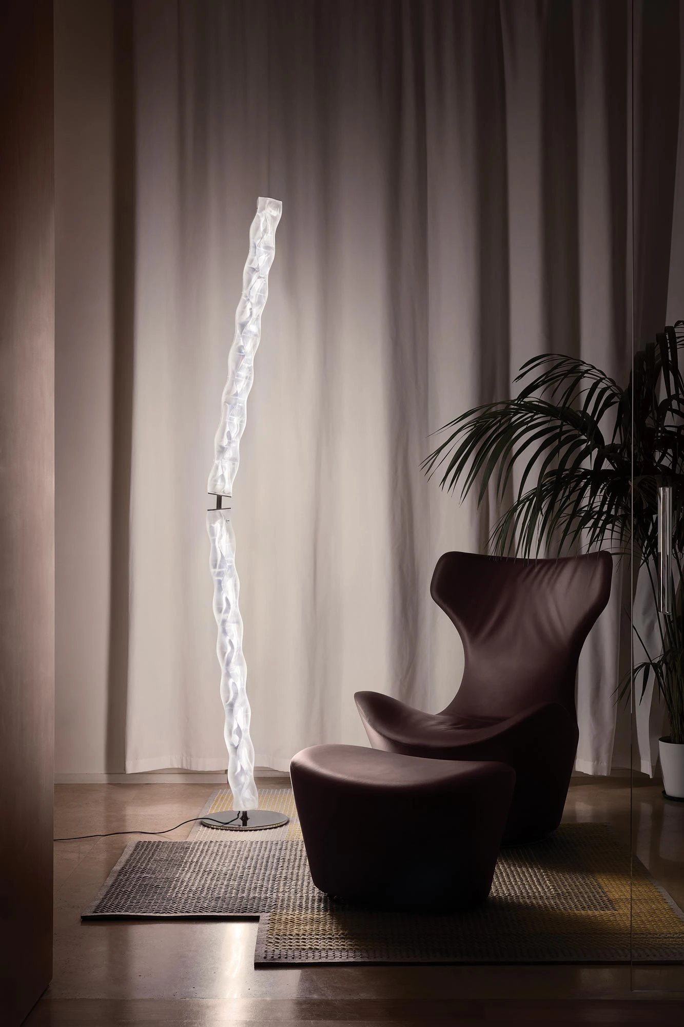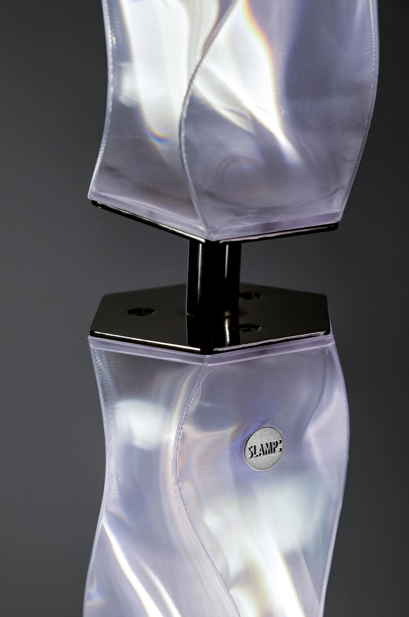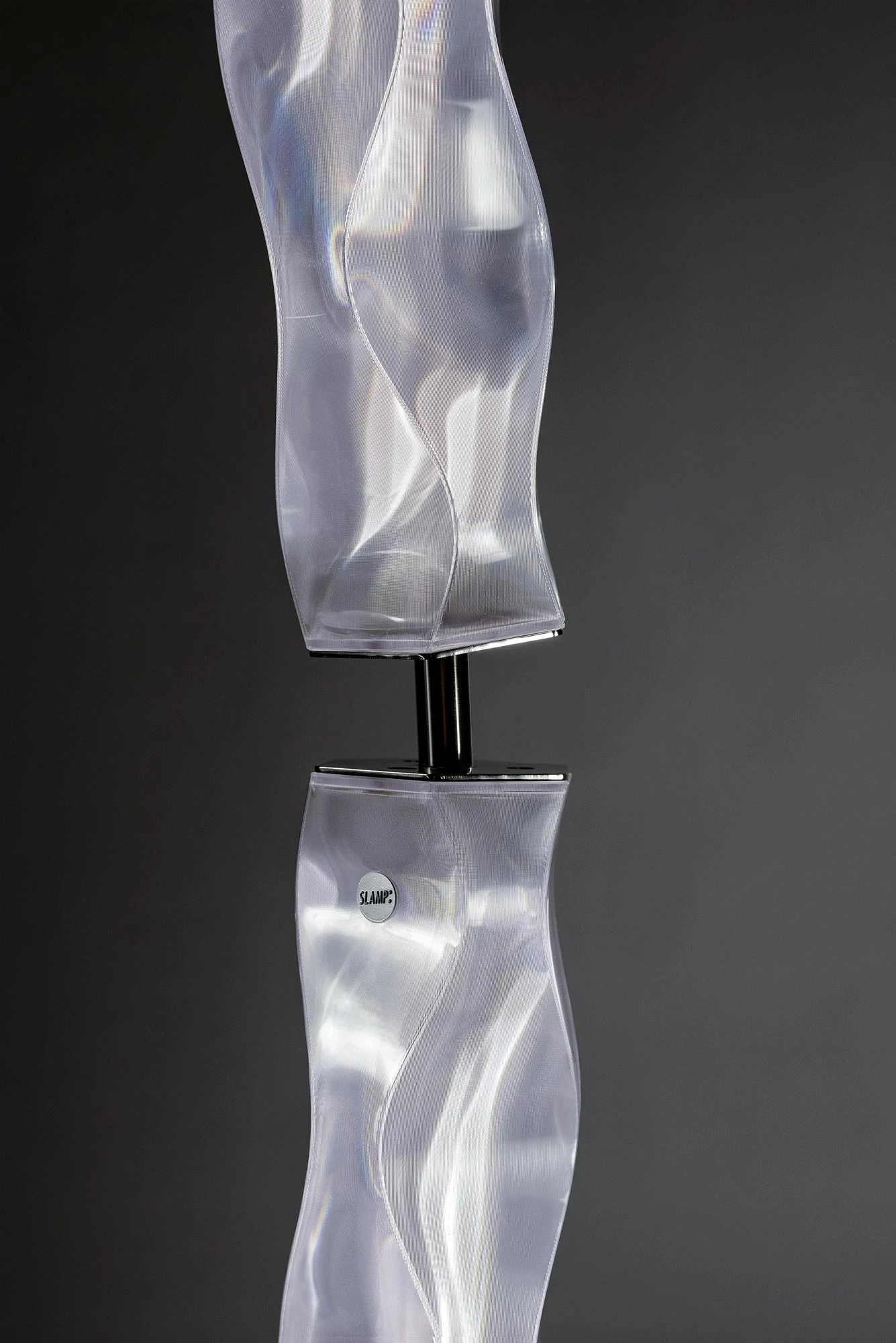 The Hugo Floor Lamp’s innovative design creates a soft, weightless glow that is sure to transform your space. Constructed of Slamp’s patented Lentiflex, the Hugo’s unique build adds drama. Place in the bedroom, living room, or office to bring sophistication to your home. Built in dimmer allows the user to set the mood. CE listed.