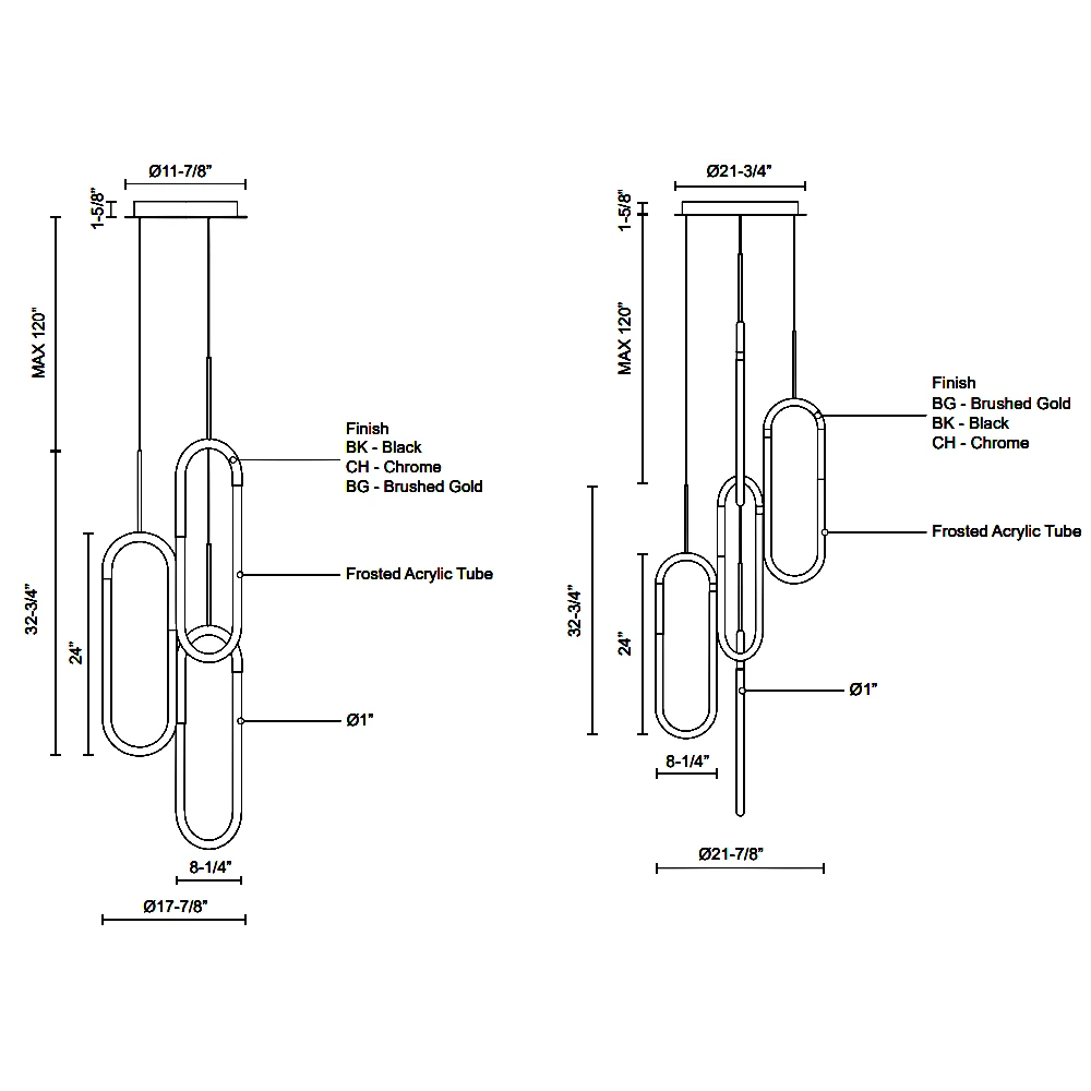 The Huron Multi Light Pendant is an elegant open frame LED fixture with a slender frosted acrylic tubes proving soft lighting. This functional piece adds light to your space without obstructing the view of the surroundings. Dimmable with TRIAC or ELV dimmer.