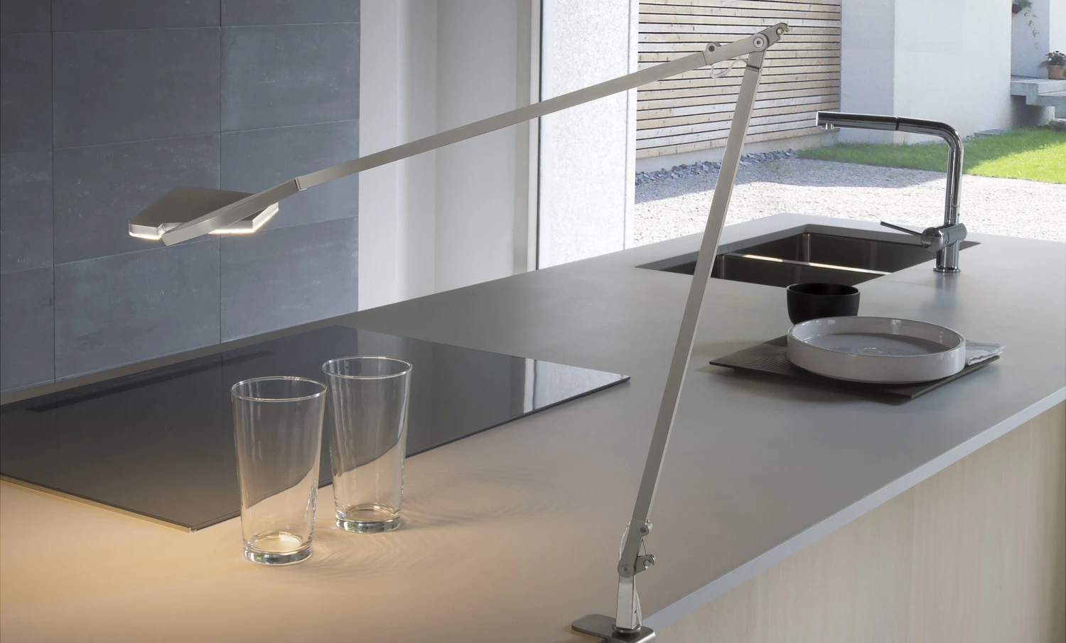 The Jackie Clamp Table Lamp is constructed of cast aluminum alloy in a Titanium, White, Black, or Red finish. Double jointed for maximum adjustability. Includes integral LED driver with 5 step touch dimming. CSA certified, listed to UL & CSA Standards. Manufactured in Italy by Panzeri.