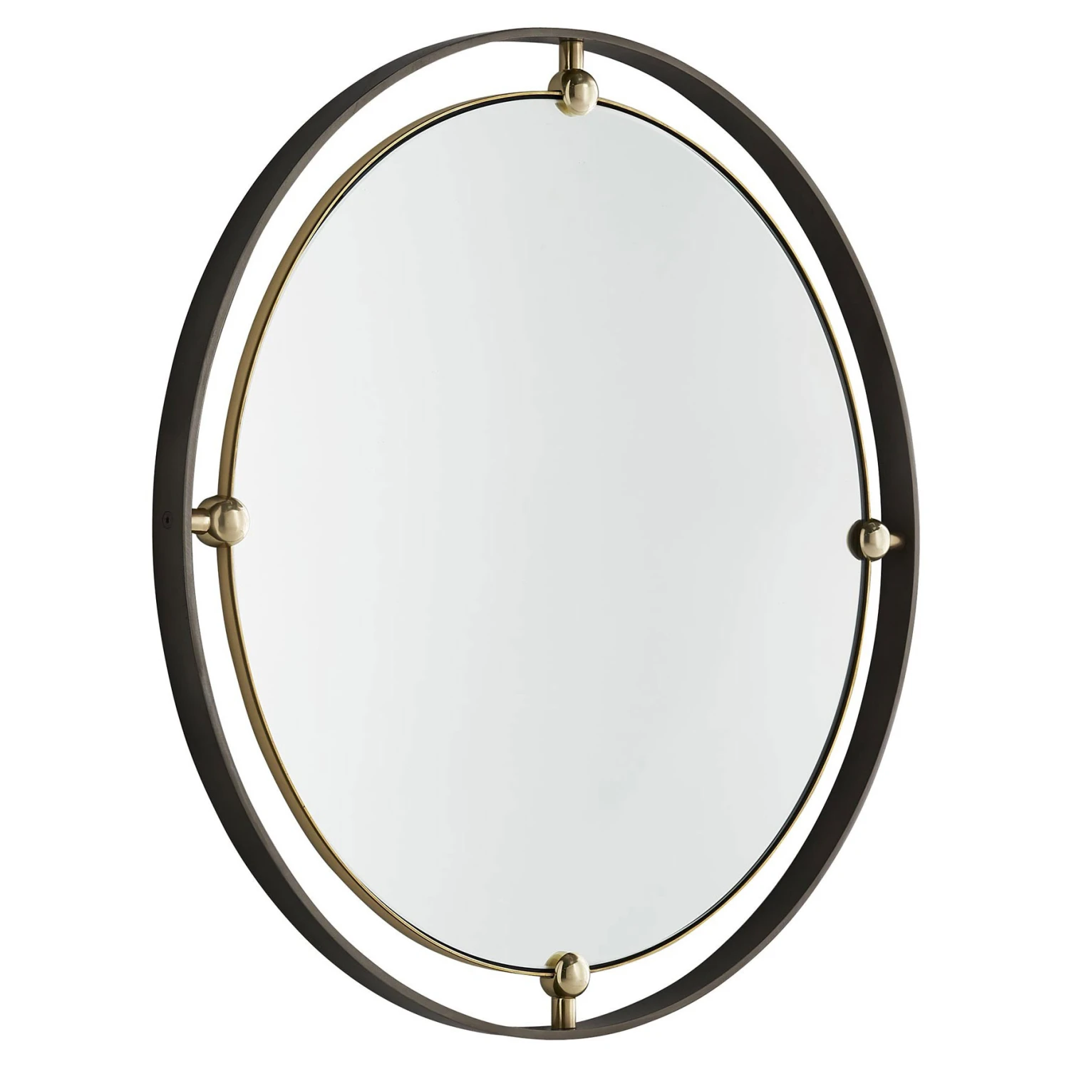 The Janey Round Mirror features a Natural Iron frame with Polished Brass accents, for a chic look. 30 inch width x 1.5 inch depth.