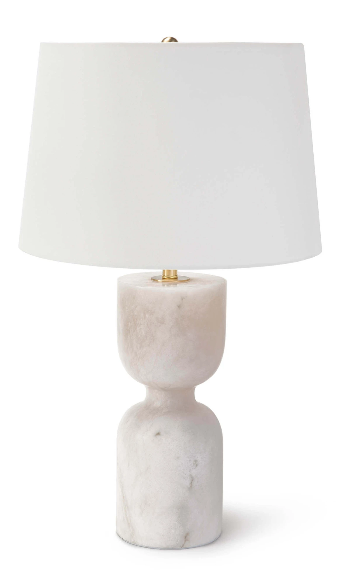 The Joan Table Lamp is shapely yet stately, example of transitional design. Its organic feel brings softness to any modern space. Place the Joan on your desk, in the bedroom or dining room to heighten your aesthetic. Available in two sizes. Small Available in Clear. Larger size available in Clear or Alabaster. UL listed.