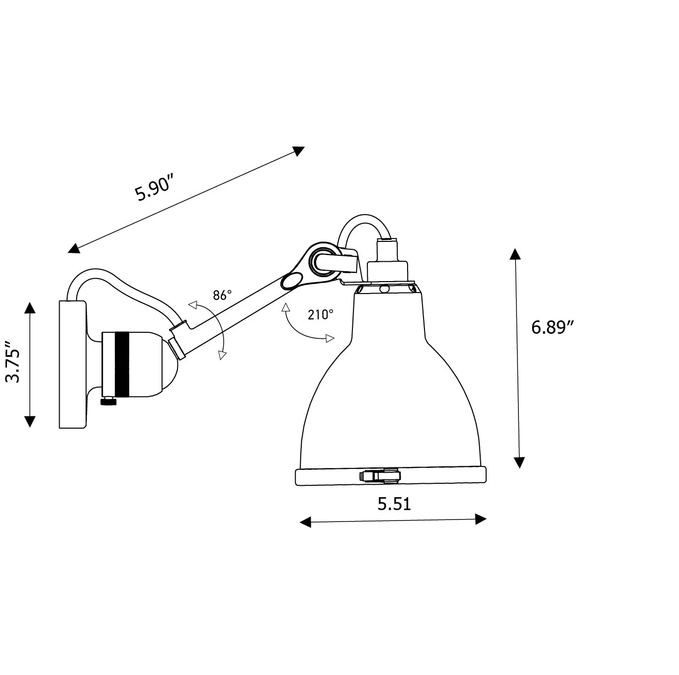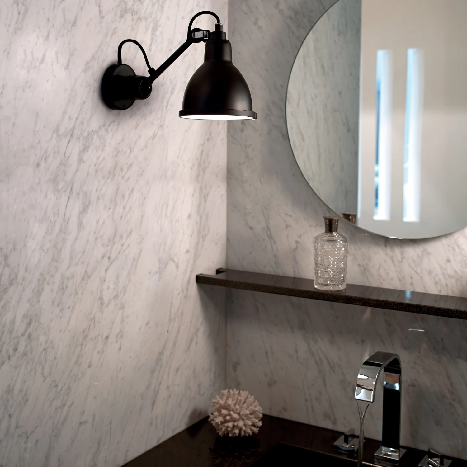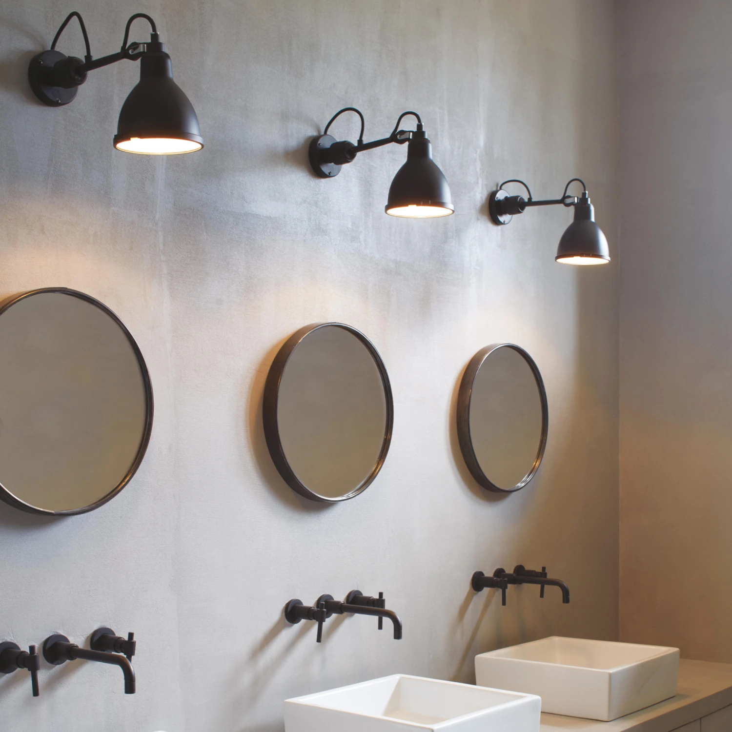 The Lampe Gras N304 Bathroom Vanity Light is an adjustable wall sconce that is would be a perfect fit for a modern or industrial inspired bathroom. Available with a Black finish complemented by a Black, Polycarbonate, or Bare colored shade. ETL listed, damp locations.