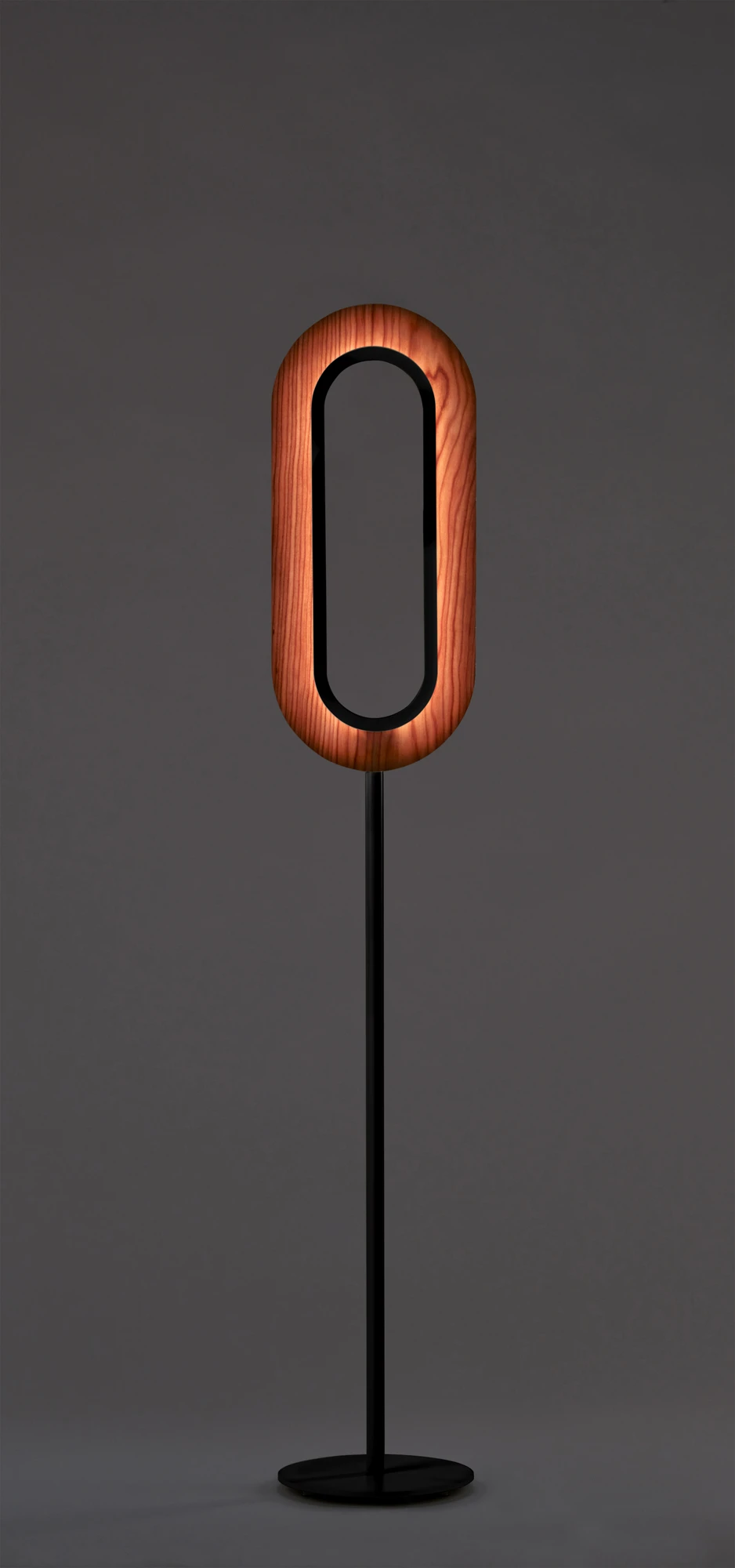 Concentrate or, disperse light over your favorite area of the home with the radiant and full-of-character Lens Oval Floor Lamp by LZF. Two concentric ellipses, the first made from wood veneer and, the second made from metal and creating a decorative and clever handle, lend this piece an enviably modern look. Whether you place this dimmable LED floor lamp within a large living space or an intimate workspace, the result is similar: it joyfully radiates a beaming smile of light. Dimming switch is located on the cord.