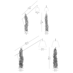 The Little People Boomtown Floor Lamp is made up of hundreds of individual figurines wrapped in Salago fiber, applied by hand, to add volume and body to a sculptural composition of steel. The result is both dramatic and meaningful, showing what happens when people unite and work together. Shade arm adjusts up and down.