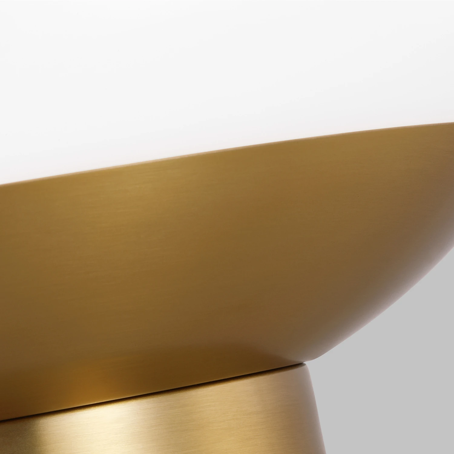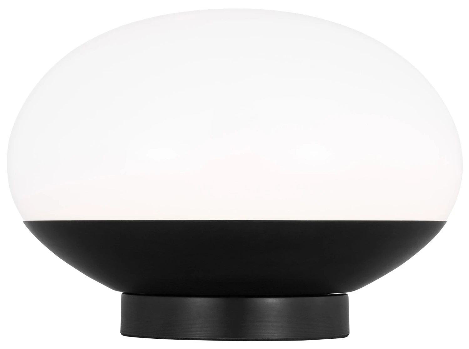 The Lune Accent Lamp elevates the midcentury modern design to new levels with its clean silhouette. The smooth steel body holds a graceful mouth blown mushroom shaped glass shade. On/Off foot switch is located on the cord.
