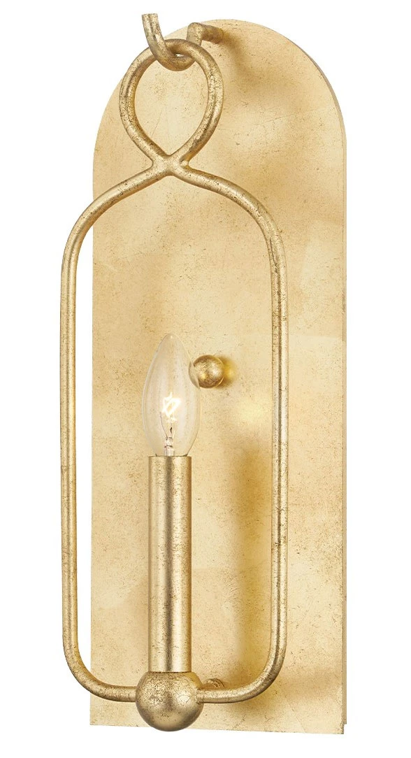 The Mallory Wall Sconce makes a stylish statement with its open, arched metal frame. Finished in Aged Iron or Gold Leaf, the Mallory’s straight candle holders create a beautiful contrasting effect. Place anywhere you want to add bright, beautiful light. Damp location rated. ADA compliant. UL listed.