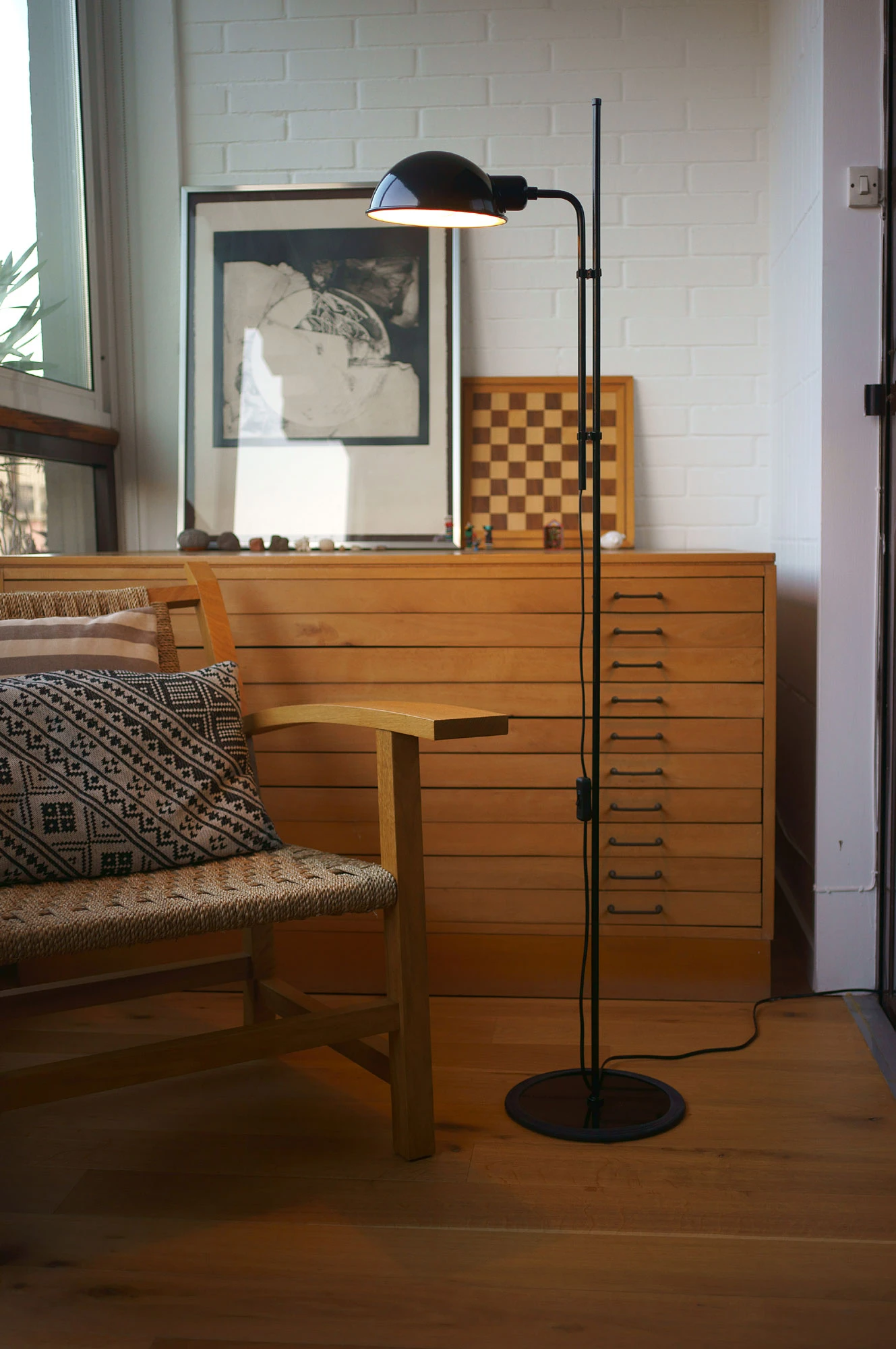 The Funiculi Floor Lamp is simplistic and functional, perfect in any room of your home. The mechanism for raising and lowering the lamp uses a pair of clips which make the height of the shade adaptable to any user’s needs. The shade itself can be rotated 360 degrees to point the beam of light wherever it is required. On/Off switch on cord.