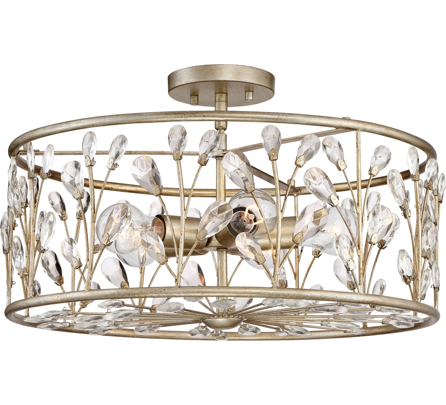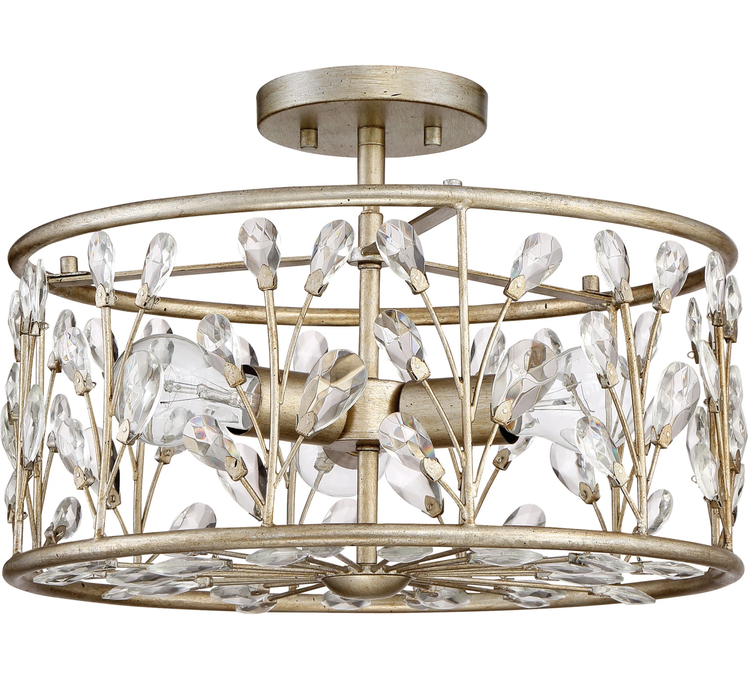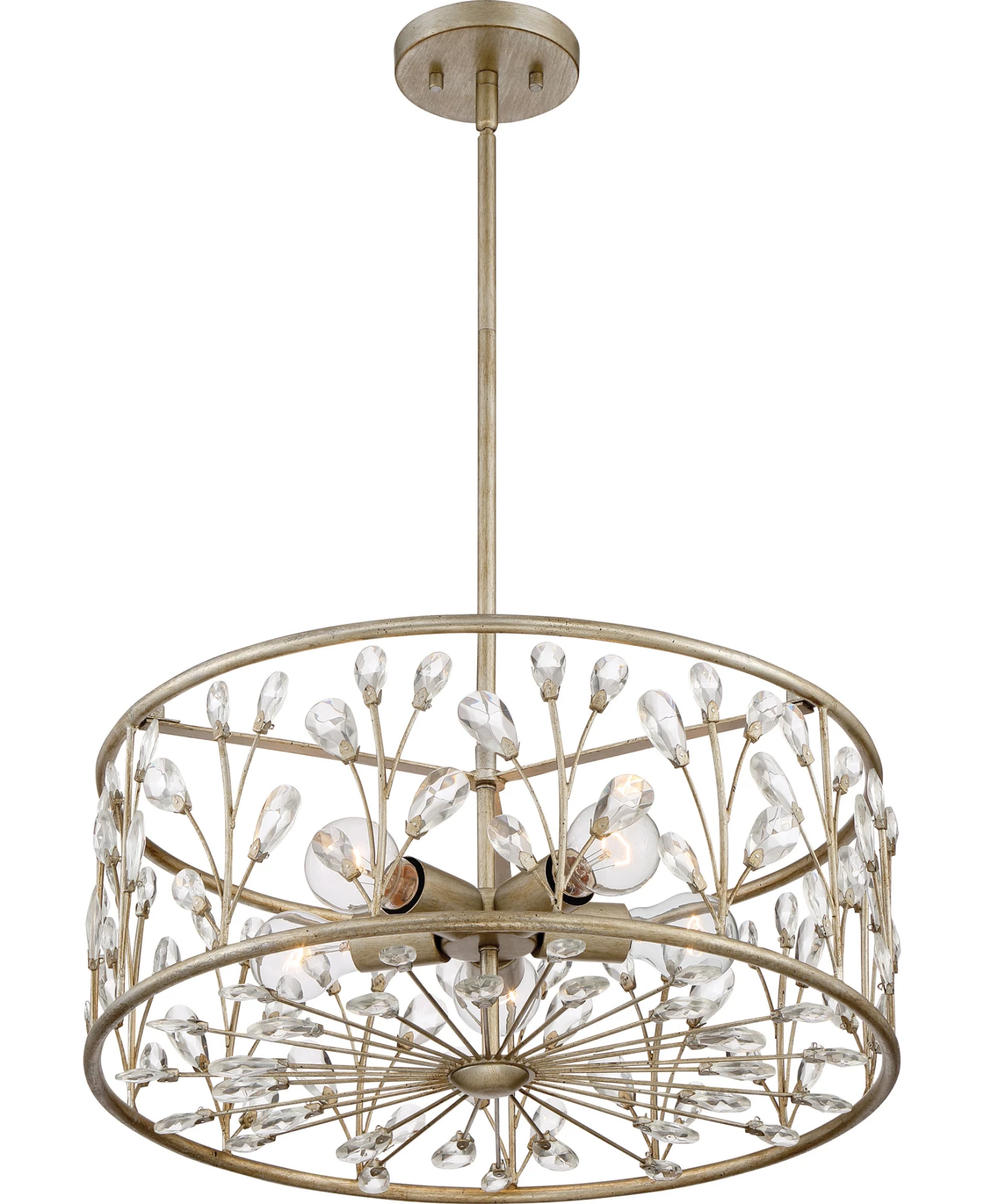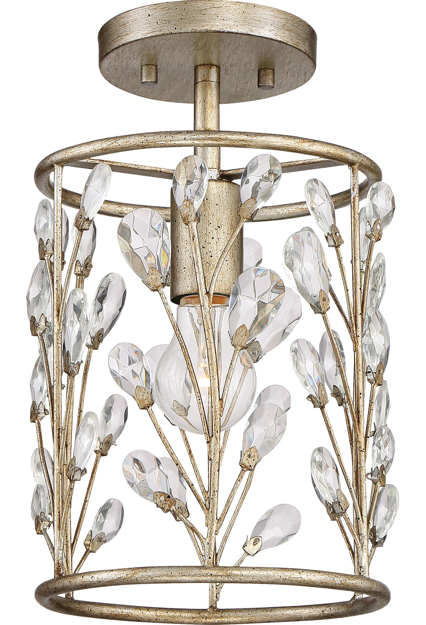 The Meadow Lane Convertible Pendant is a balance of metal and crystal come together in a vision of nature. The varying hues of the Vintage Gold finish showcase the buds of shimmering Crystal for a dazzling display of light. For added convenience and functionality this fixture can applied used a pendant or semi-flush mount. Available in three sizes. Includes two 6 inch and two 12 inch downrods. ETL listed for damp locations.
