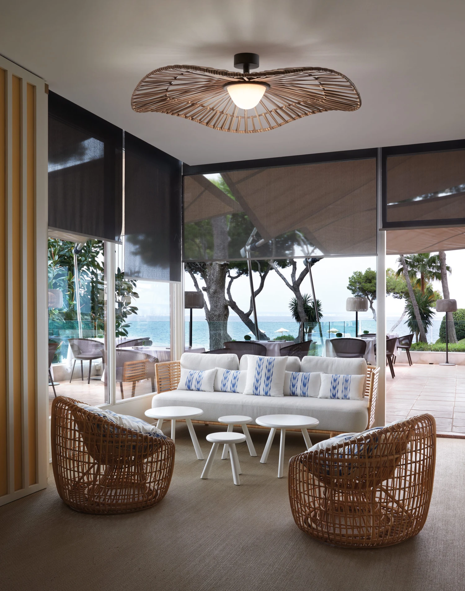 The Mediterrania PF/105 Outdoor Ceiling Light is an ode to the bright, warm beams that shine across the Mediterranean. Its gentle waves are handwoven out of recyclable, non-toxic synthetic polyethylene fiber and the integrated LED is protected by a polycarbonate diffuser to withstand outdoor conditions. This light is perfect for patios or other exterior spaces, and works just as well in interior spaces to create a relaxing ambiance.