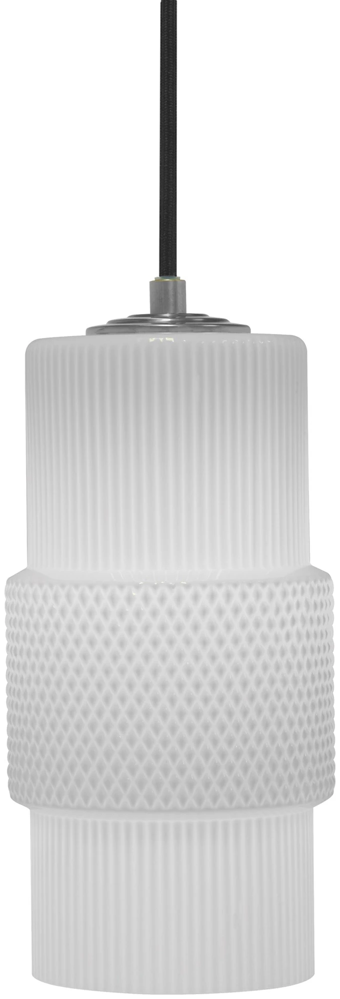 Mimo Cylinder Pendant has a hard edge yet is soft, the prefect choice for any decor. Features hand-blown Italian glass in Bronze, Gunmetal, White, and Clear. Finished in Brass or Gunmetal with a Black cloth cord. One 75 watt, 120 volt A19 medium base bulb is required, but not included. Comes with 6 feet of cable. UL listed. Made in Italy. 6 inch width x 12 inch height x 72 inch maximum length.