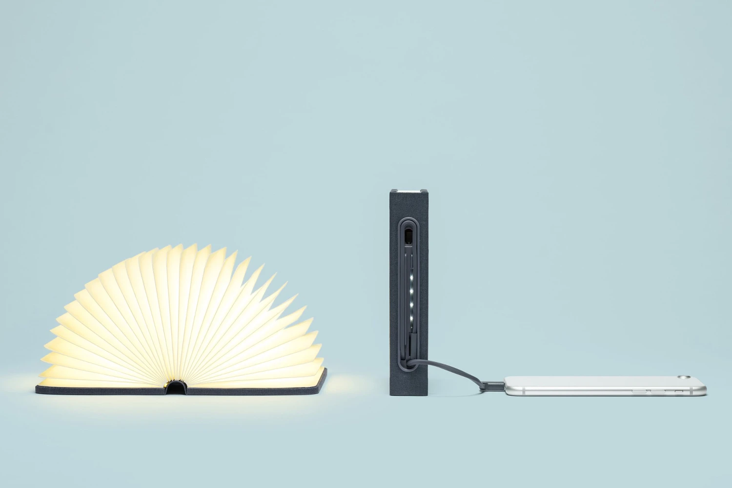 The Lumio Mini+ Book Light is a compact, multi-functional lamp and battery pack for mobile phones that conceals itself in the form of a hard-cover book. Made from durable, water resistant and 100% recyclable Dupont Tyvek, the book light is available in a variety of different color combinations, featuring a magnetic spine cover that is inter- changeable. You can open it as little or as much as you want, up to 360 degrees, allowing you to have just the right amount of light for the occasion.