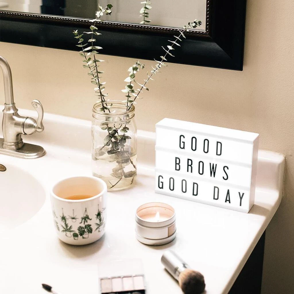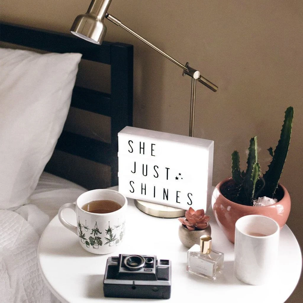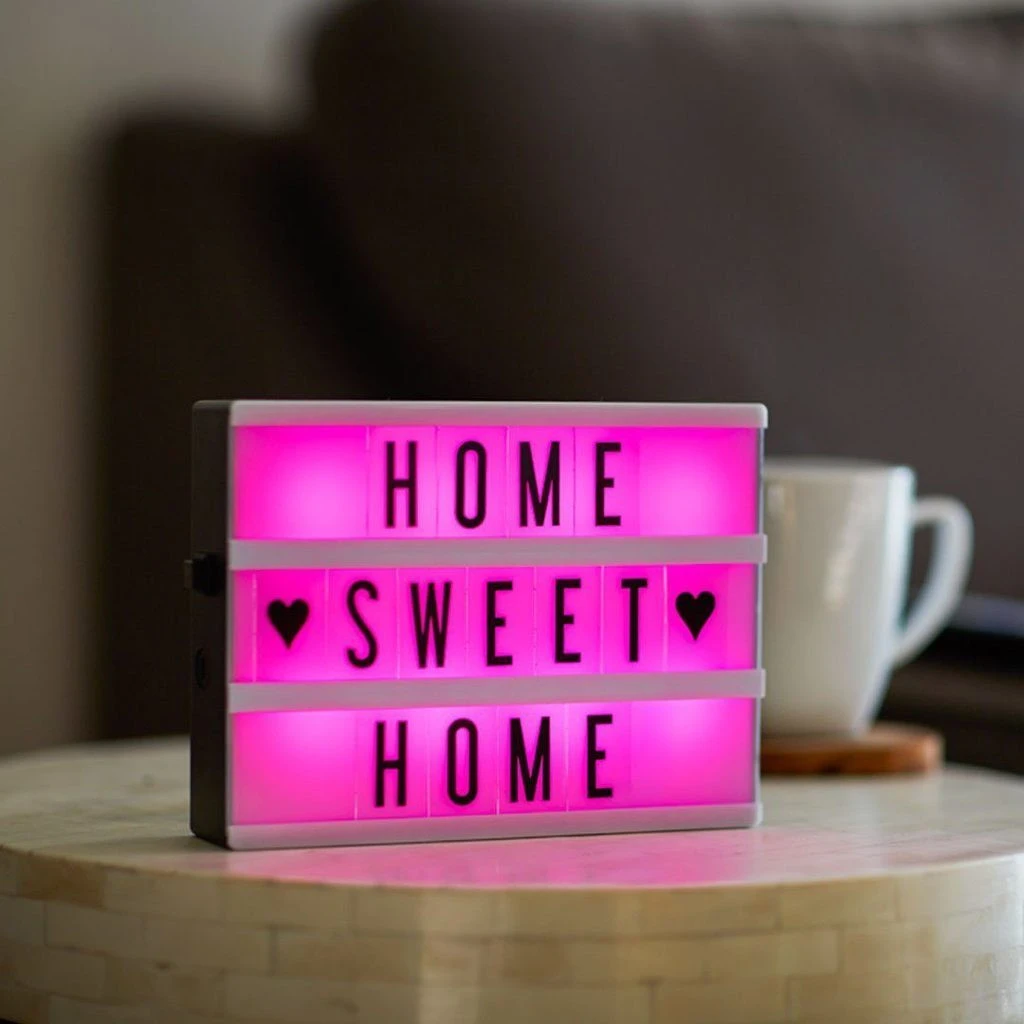 The Mini Cinema Lightbox is finished in a White shell, includes a matching braided rope USB cable. Simply slide in letters to make your own sign! Perfect for home and wedding decor, milestone announcements, photoshoots, and just about anything. Powered by USB cable (included). Table top or wall mountable. Lightweight; portable; fits 8 tiles across each row. Includes 100 letters, numbers, character and symbol tiles. Extra tiles sold separately. Indoor use only.