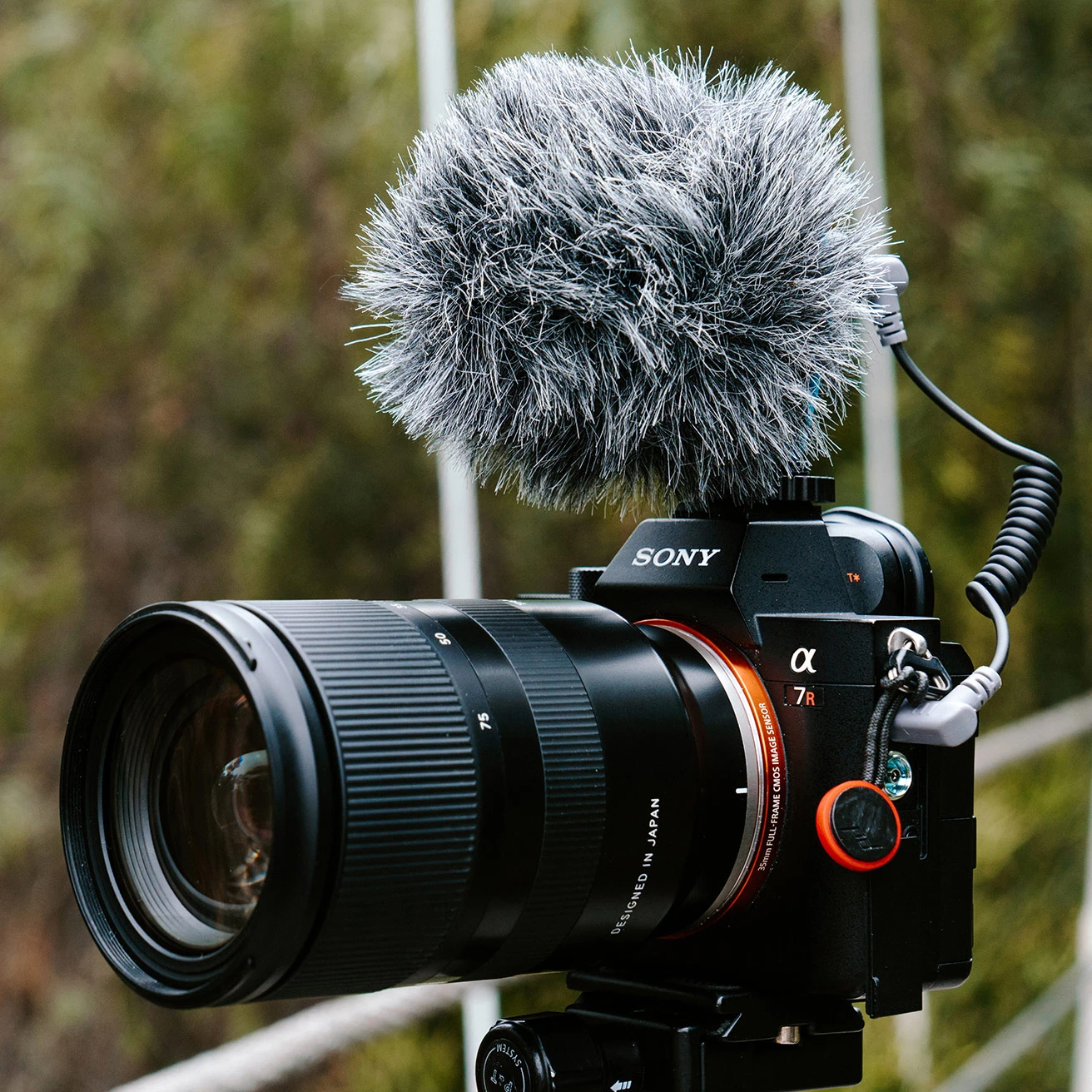 The microphone provides professional quality audio and includes a foam windscreen and windshield, and a 3.5 mm cable for connecting to a phone.