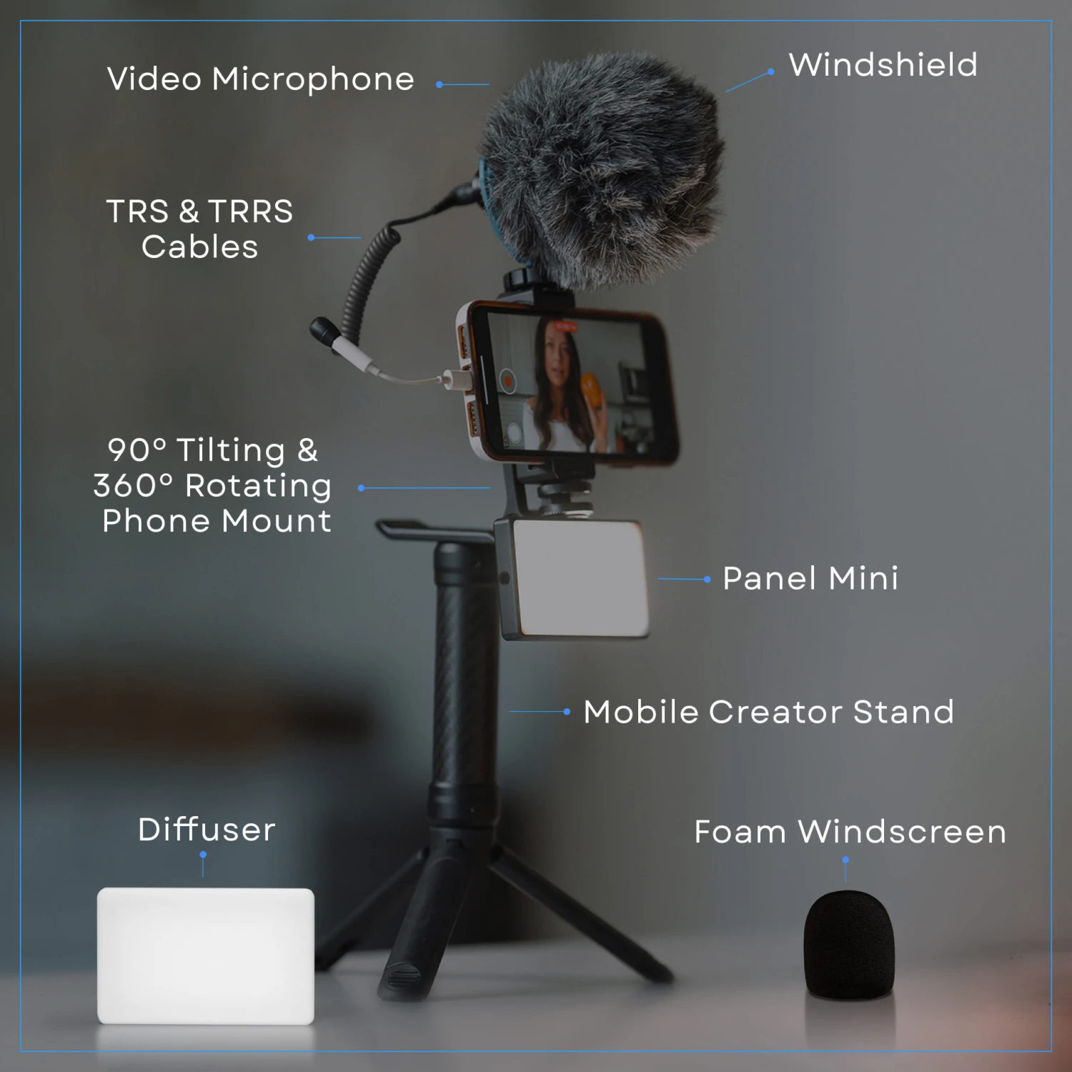 The Mobile Creator Lighting and Audio Kit is the essential 3-in-1 setup for professional mobile content creation. This compact kit provides customized lighting, crisp audio, and versatile mounting configurations to capture your vision. Ready to go right from the box, no more excuses to not get started.