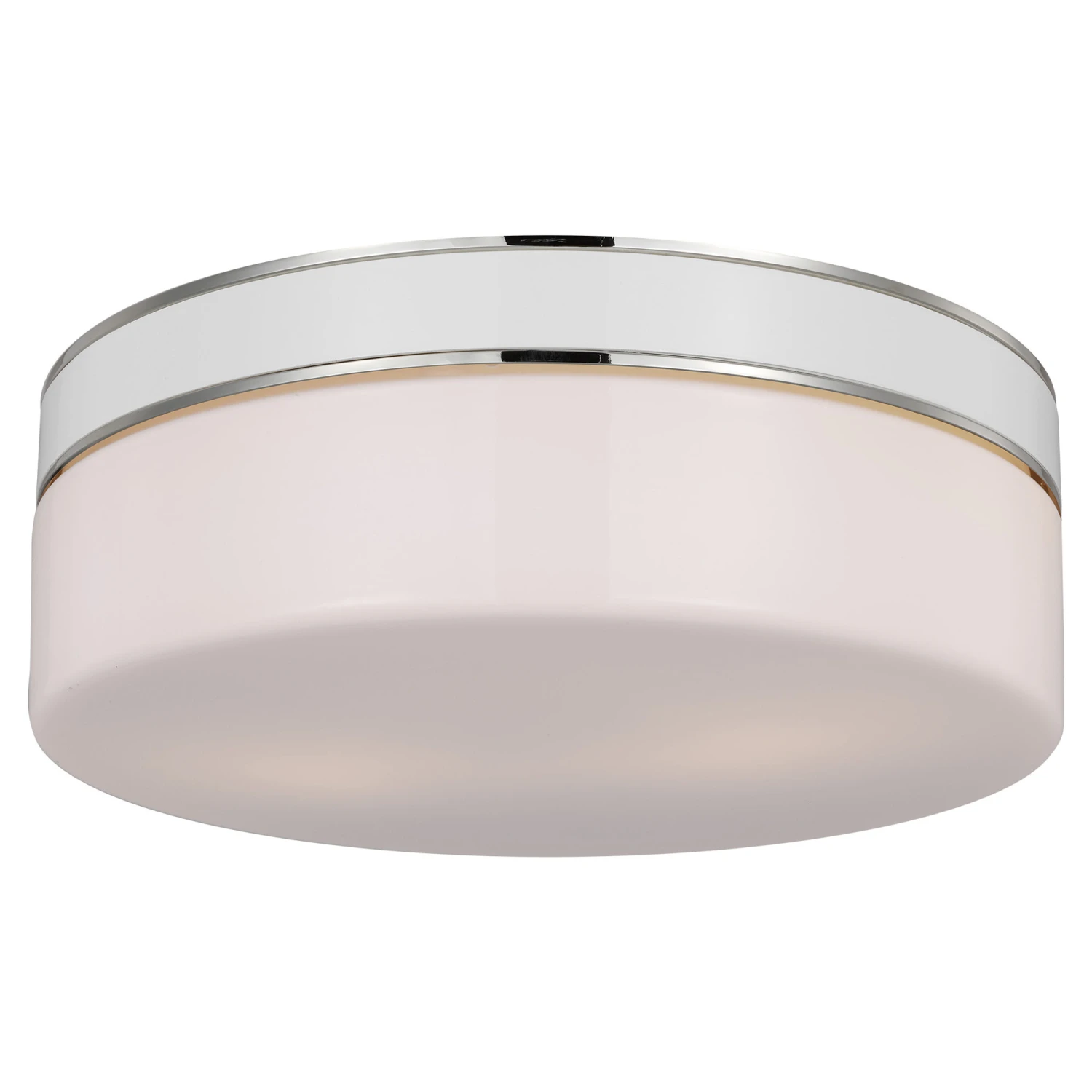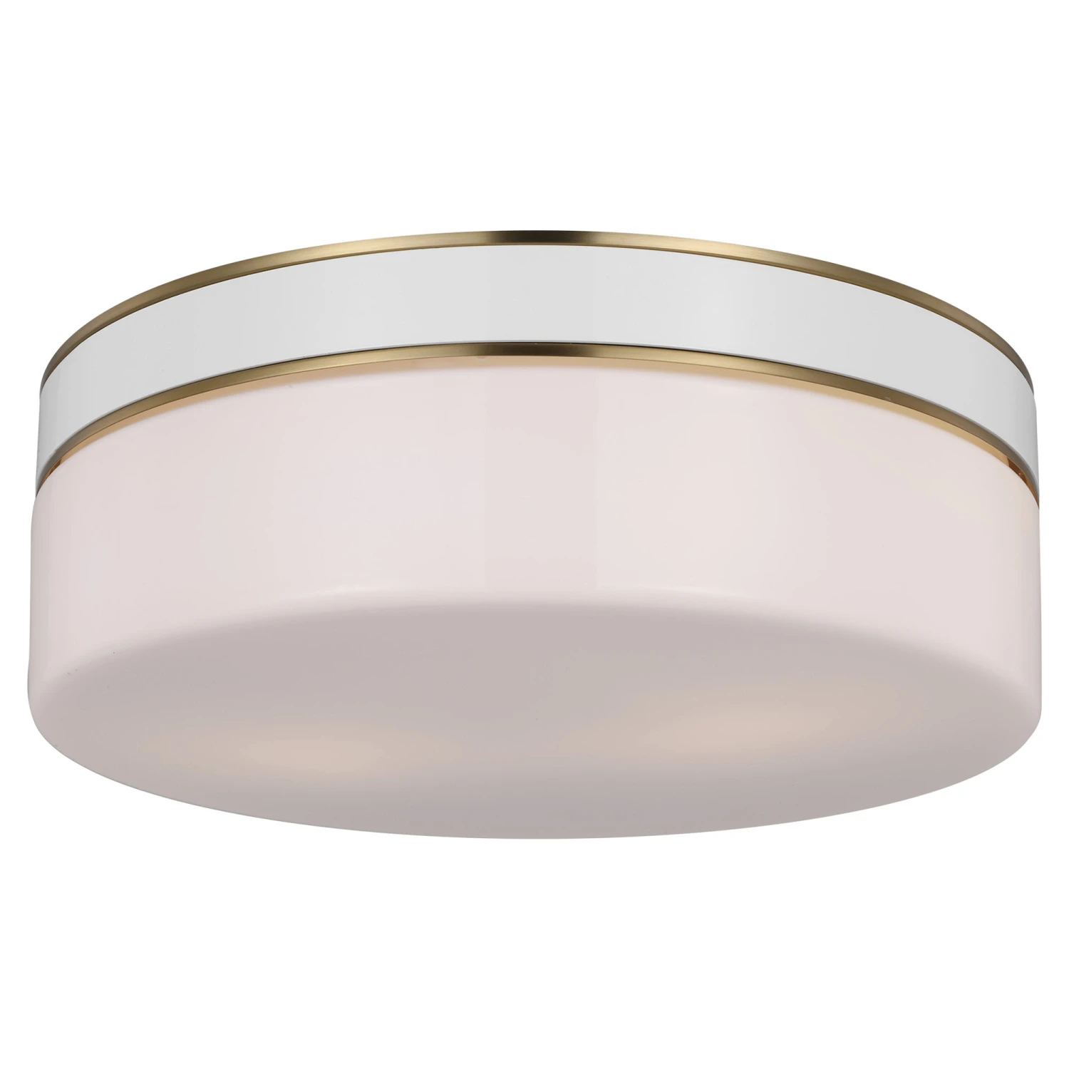 The Monroe Large Ceiling Light Fixture is inspired by 1950s design and enamel metal accessories from the kate spade brand. This circular flush mount features a milk glass shade complemented by glossy painted white enamel, with metal-finished edges creating chic accents.