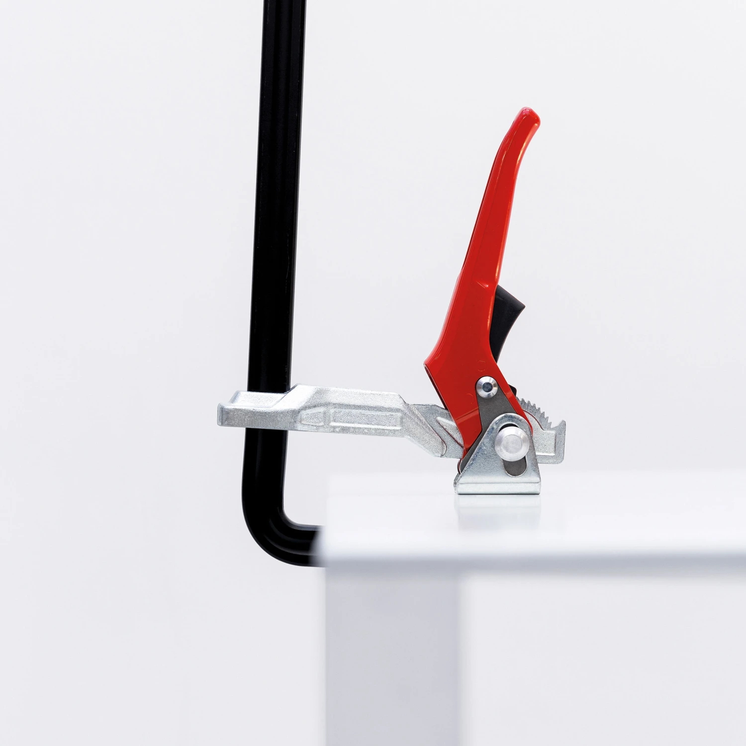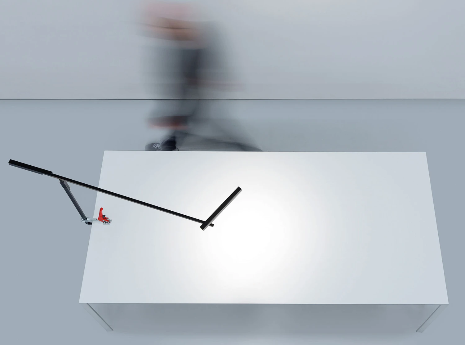 With its modern, minimalist aesthetic, the Morsetto Desk Lamp is a stylish and practical fixture that will elevate any workspace. The lamp can be attached to a desk with the oversized workshop-style clamp, and the light can be directed with a trio of adjustable arms. The matte black finish is accented with red details for a bold color palette. Includes independent driver. Dimmer switch located on cord