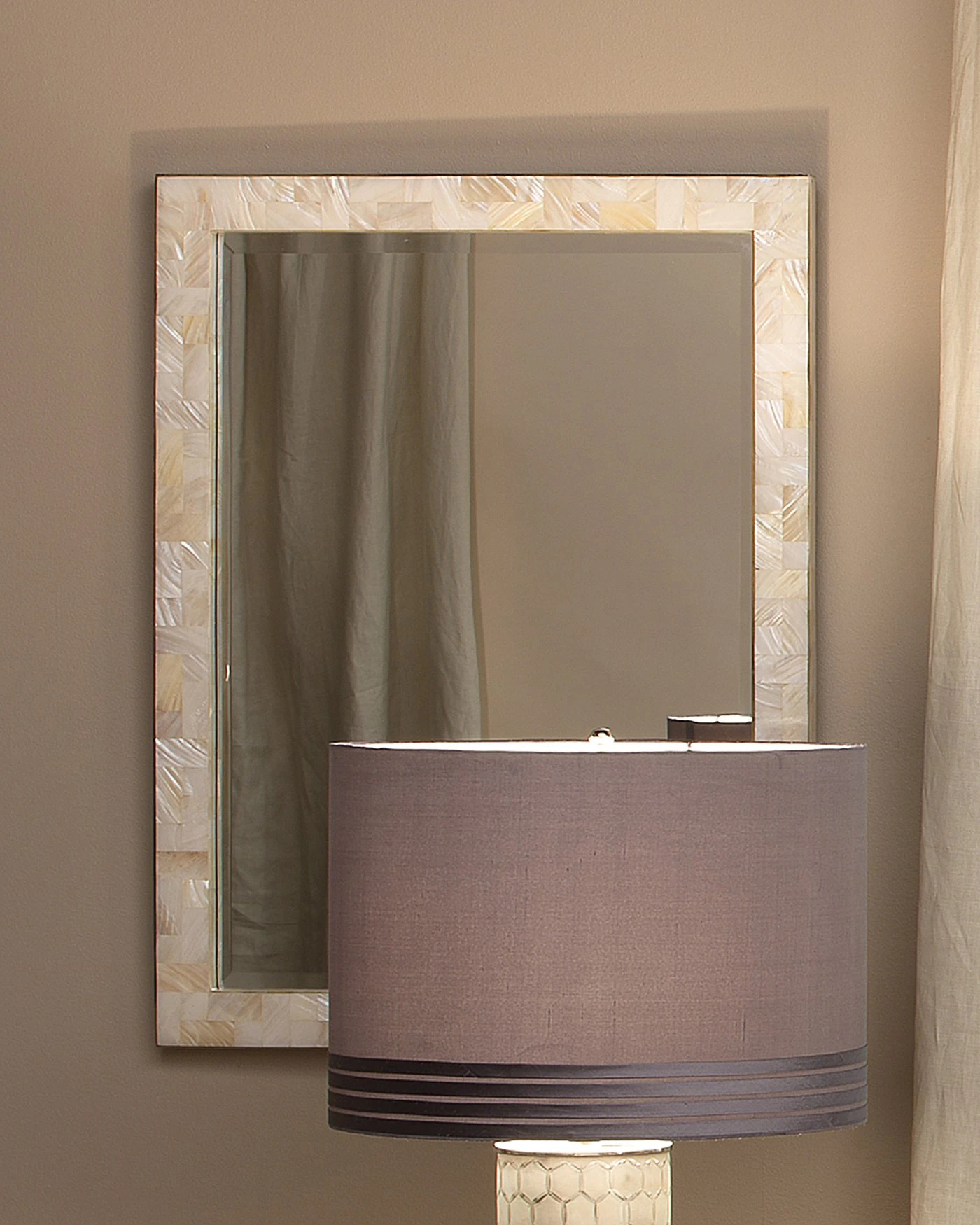 The Mother of Pearl Mirror can be hung horizontally or vertically. Available with a Mother of Pearl finish.