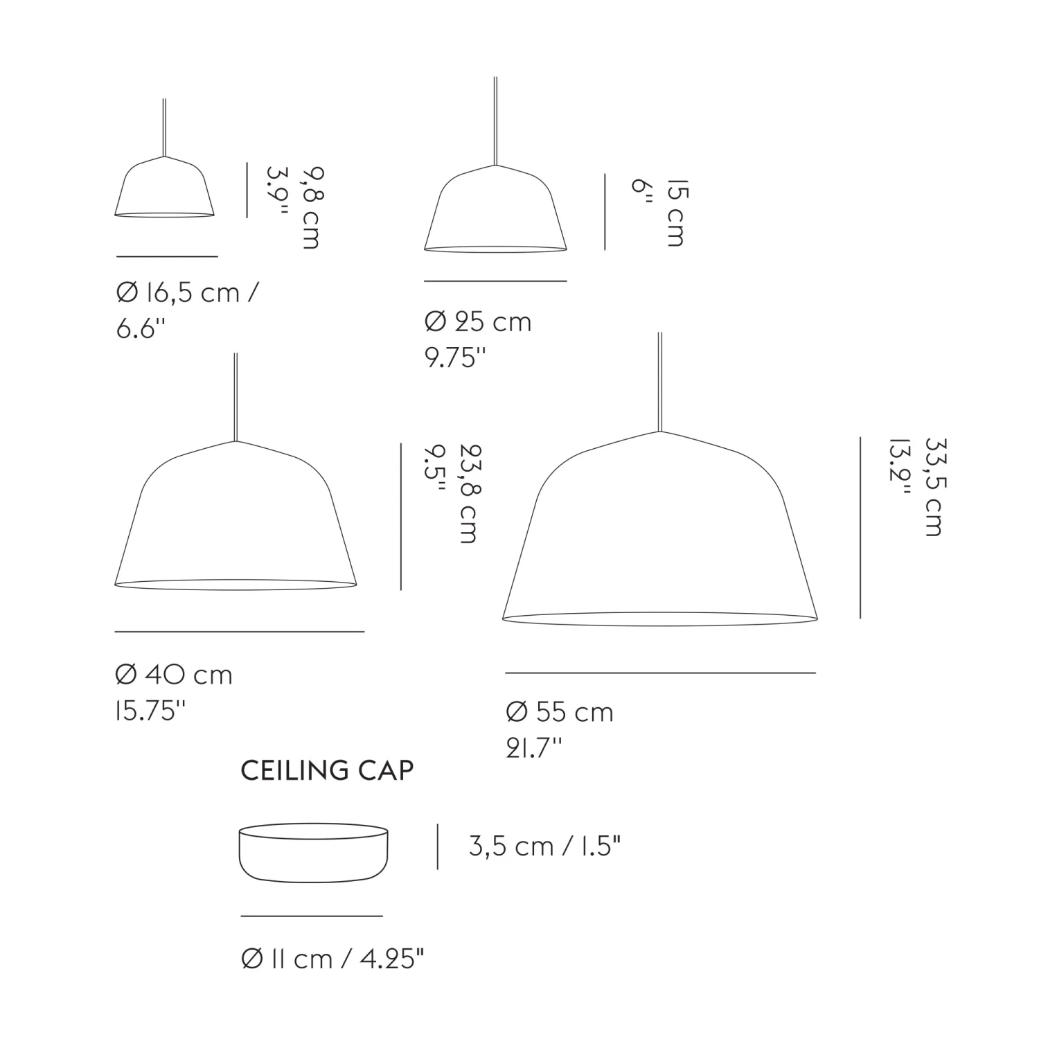 | Width | 6.6”, 9.8”, 15.8”, 21.7” |