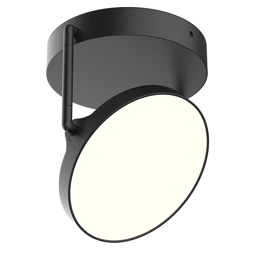 The Novel Semi Flush Ceiling Light brings a clean geometric look to your interior space. The Frosted acrylic diffuser can rotate to direct light exactly where you want it. Finished in black. ETL listed.