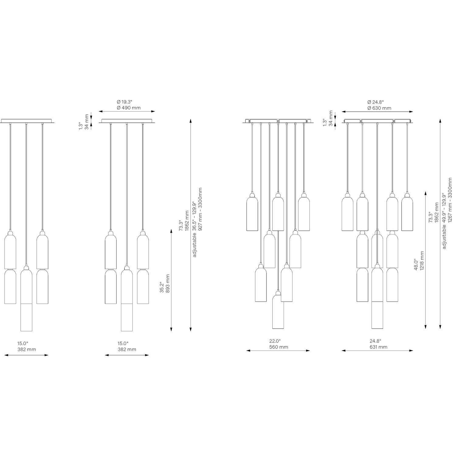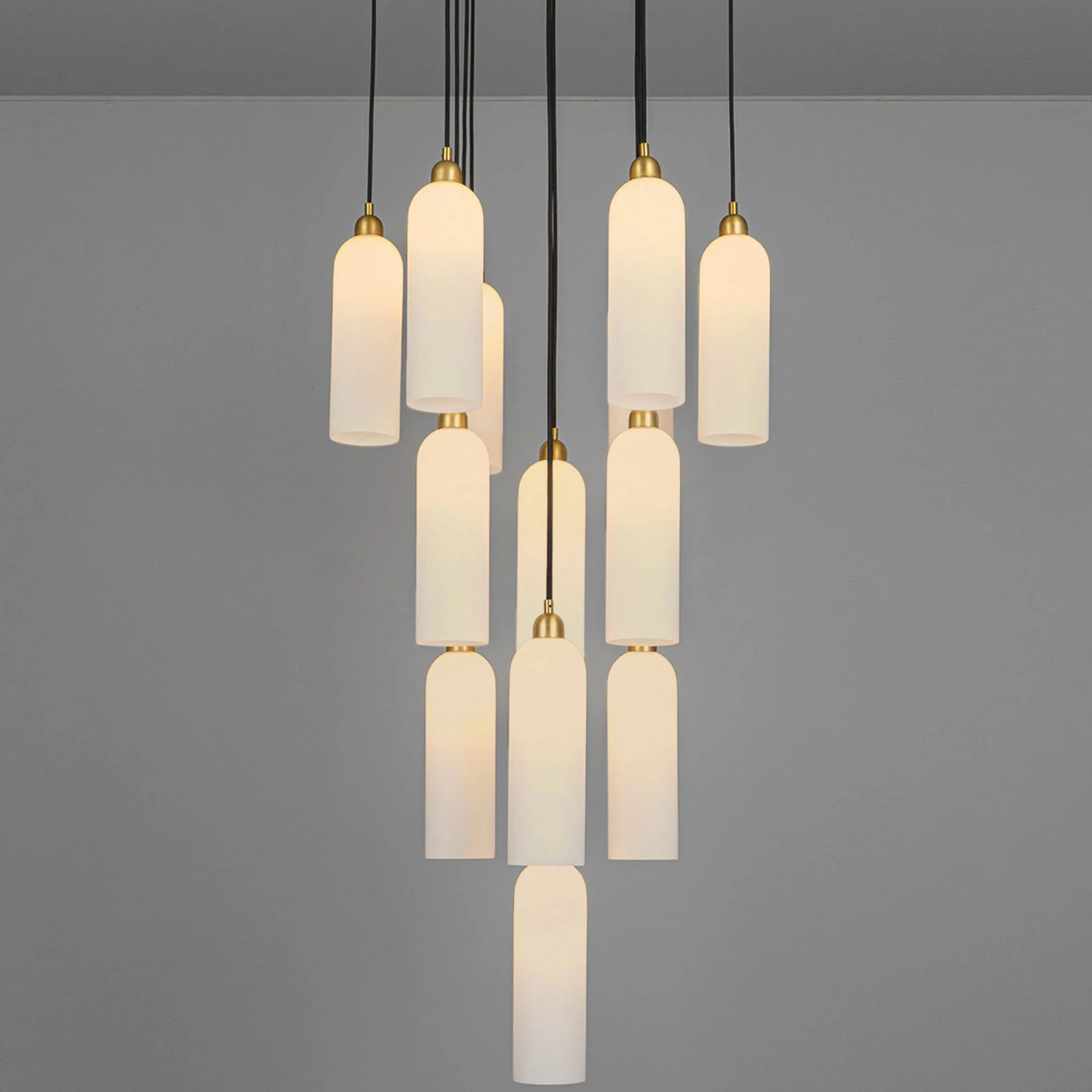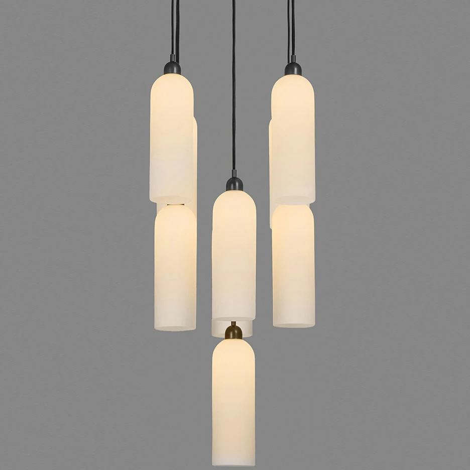 The Odyssey Multi Light Pendant’s grouping of opal glass shades will produce a warm, diffused glow in any space. The diffuser features a cylindrical shape rising to a domed top. This shape is echoed in the metal hardware connecting the shade and cord for a serene, balanced expression.