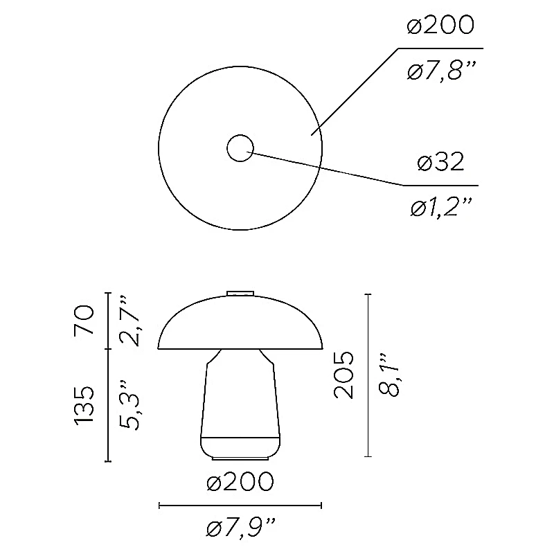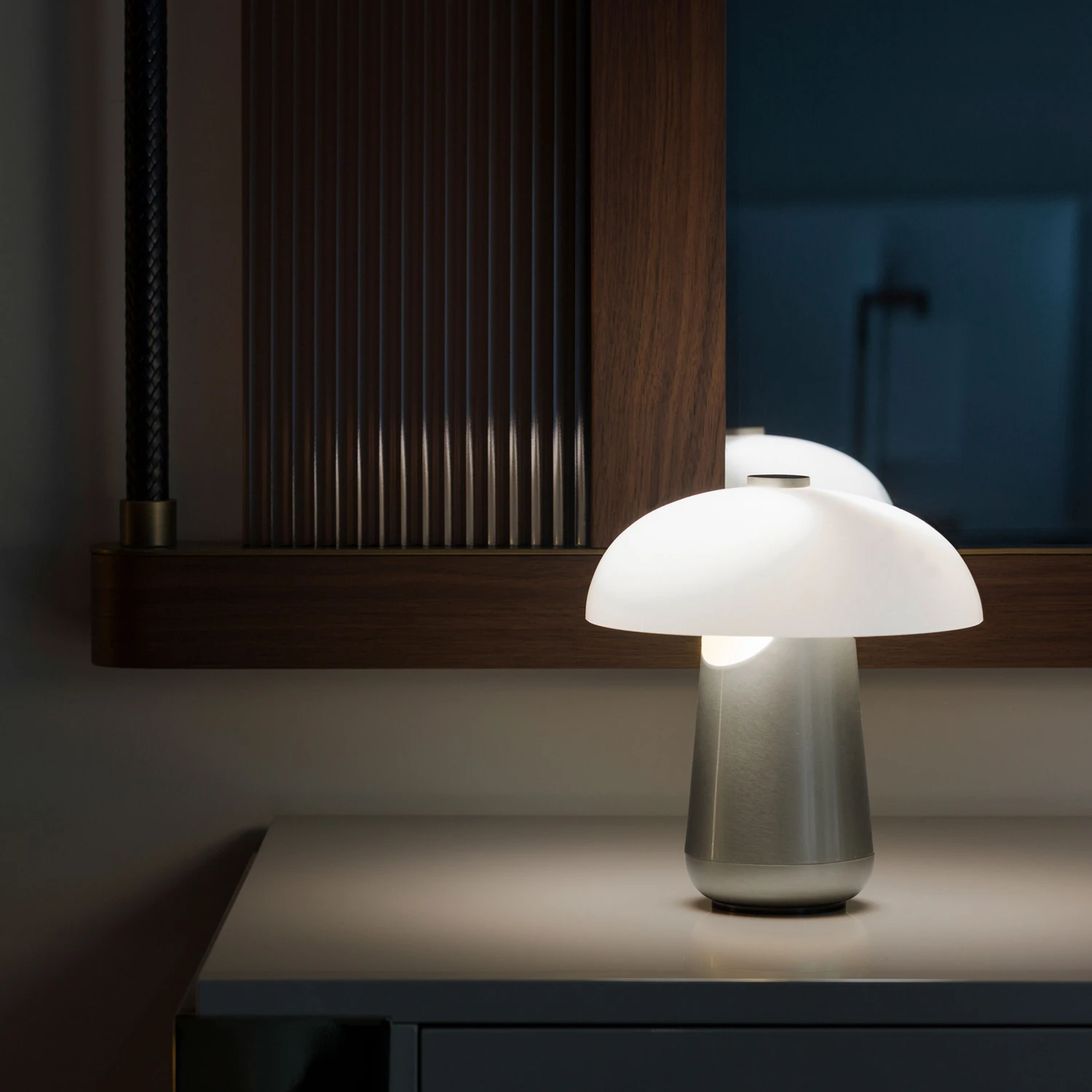 The mushroom-shaped Ongo Portable Lamp is a charming battery-powered lamp that will add a whimsical, mid-century inspired touch to any space. A built-in dimmer offers two levels of lighting intensity to create the perfect ambiance. Includes one USB-C cable for charging (adapter plug not included).