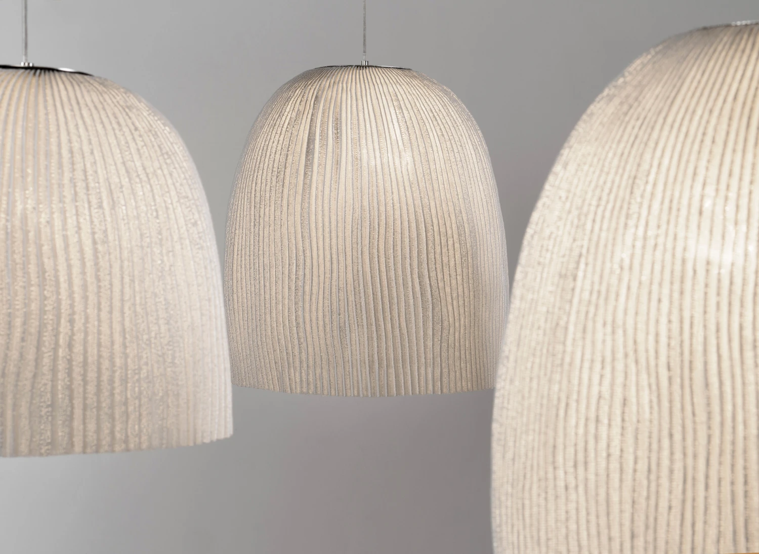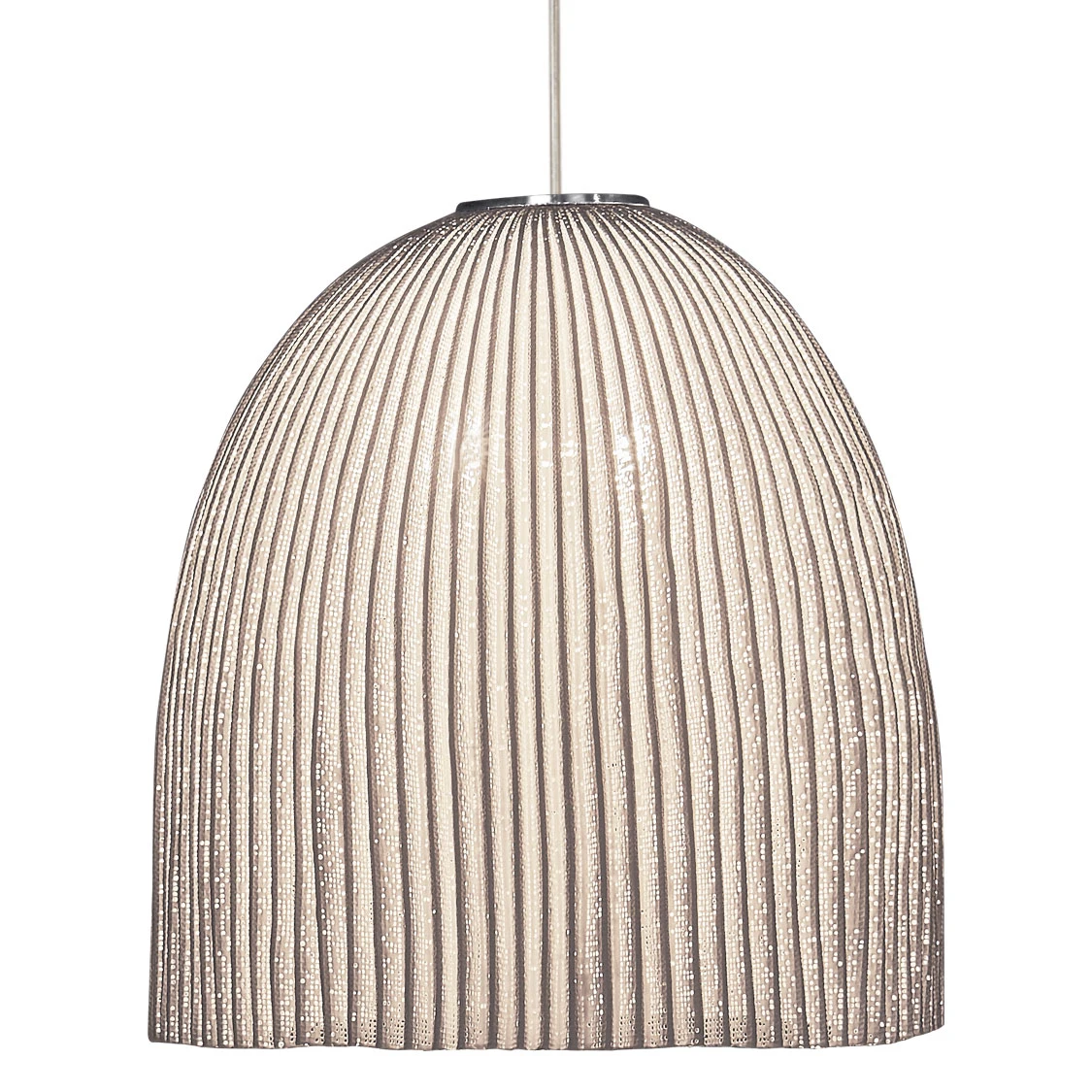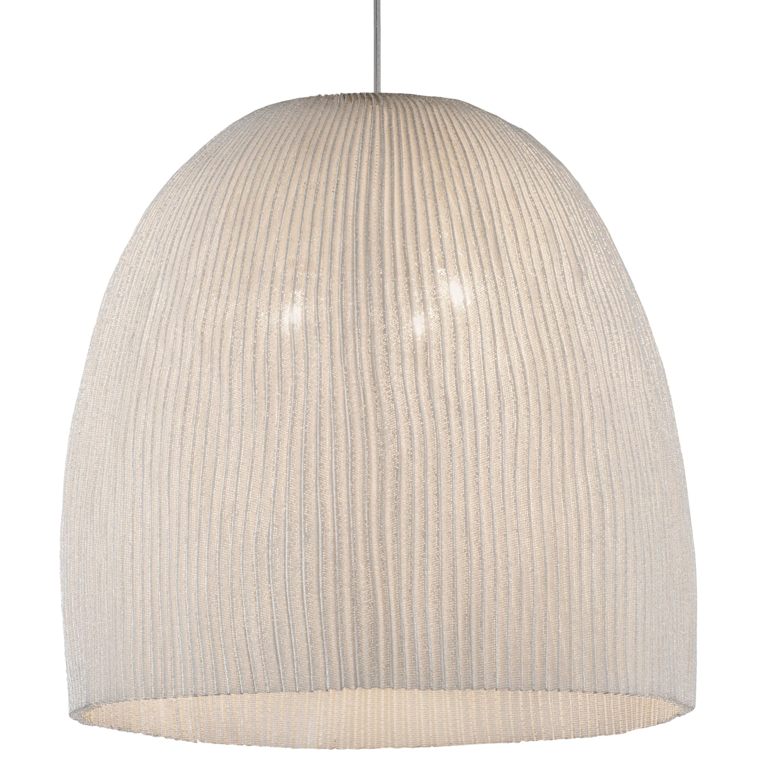 The Onn Pendant evokes feeling of the sea: shells, seaweed, and corals. Available with a White painted stainless steel mesh bell shaped shade in three sizes with two LED lamping options. UL and CE listed.