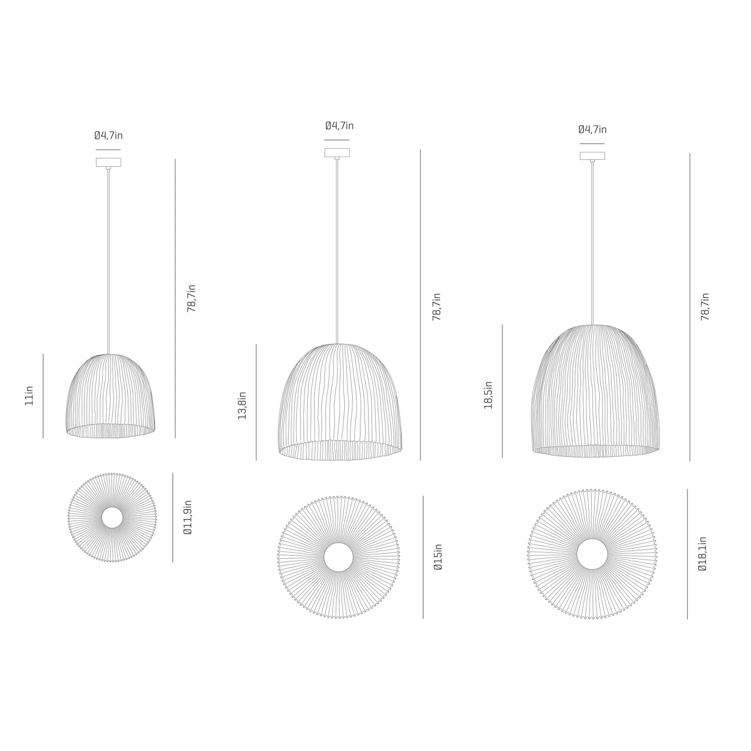 | Width | 11.9”, 15”, 18.1” |