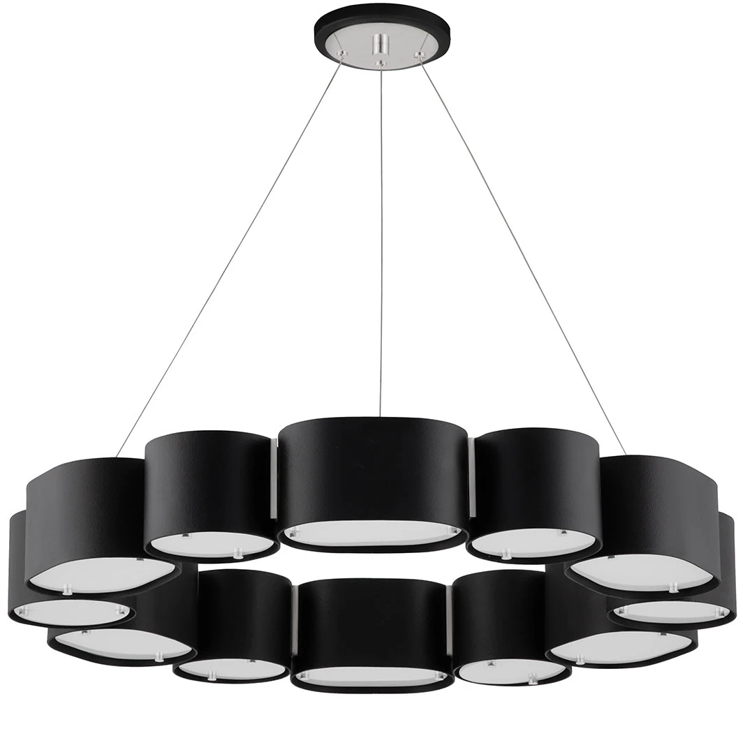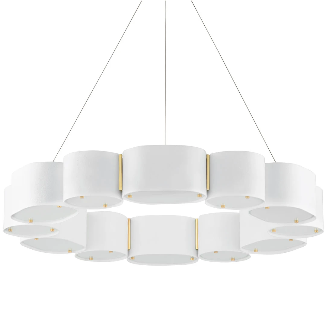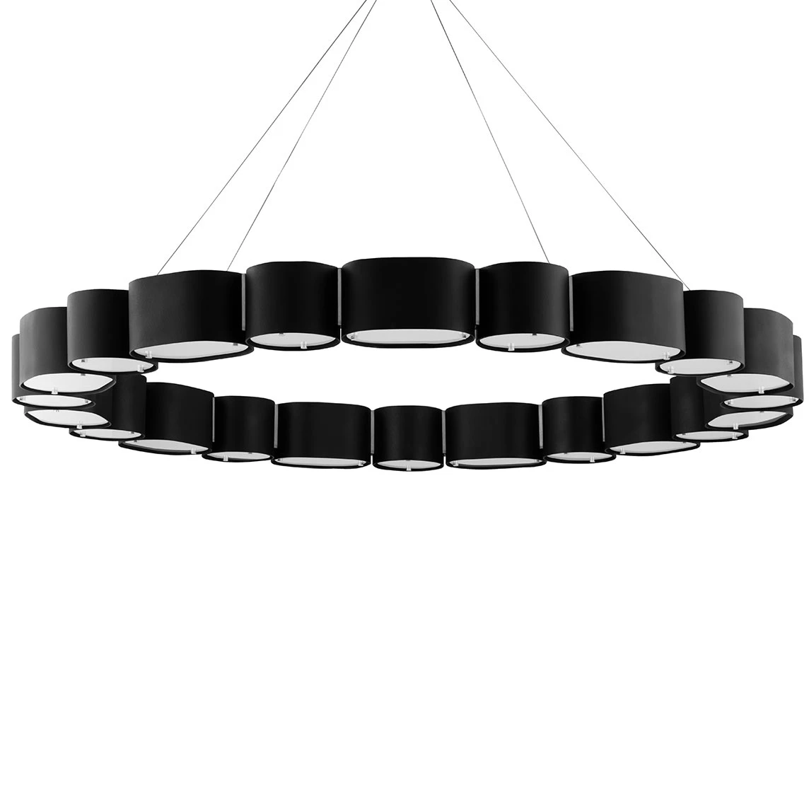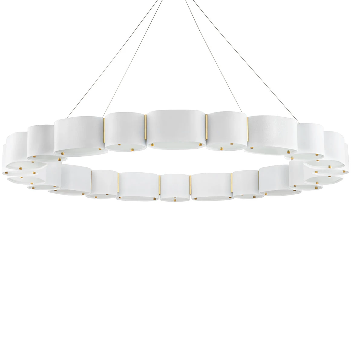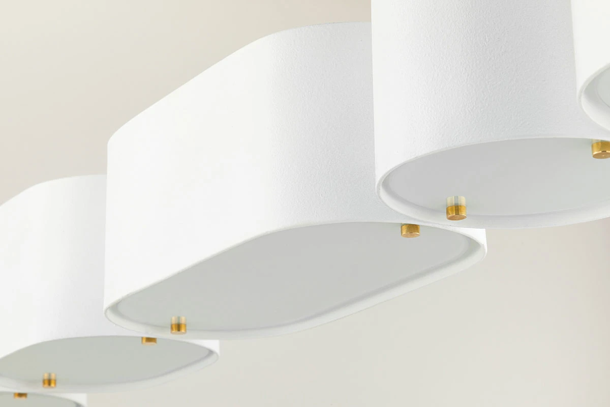 The Opal Chandelier features a series of circular and oval shades that combine to form simple, eye-catching silhouettes. The clear glass is painted white on the inside giving off a soft, diffused light.