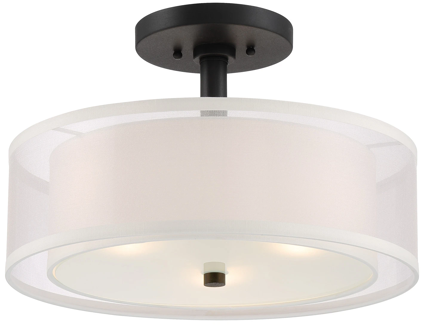 The Parsons Studio Semi Flush Light brings a clean look to a variety of interior spaces. Features a Translucent Silver linen shade with an Off White linen inner shade and a Smoked Iron or Sand Coal finish. Damp location rated. ETL listed.