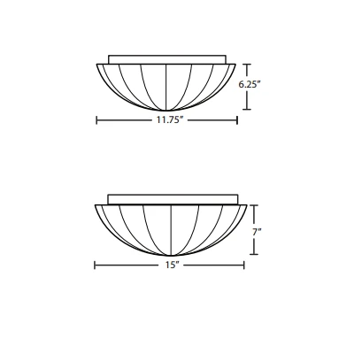 Pinta Ceiling Light Fixture features a Clear blown glass shade with stamped aluminum fitter. Glass diffuser is secured to fitter with twist and lock bayonet action. Two sizes available. Small: One 60 watt max 120 volt medium base bulb is required, but not included. 11.75 inch width x 6.25 inch height. Large: Three 60 watt max 120 volt medium base bulbs are required, but not included. 15 inch width x 7 inch height. UL listed. Suitable for indoor damp locations.