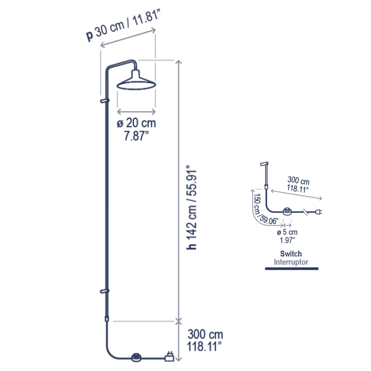 The Platet Wall Sconce features a clean and simple design with a slight industrial flair. The long body of the wall sconce is secured to the wall and then sticks out at the top to hold the shallow cone shaped shade. Available with a Matte Black body complemented by an Olive Grey, Grey, Terracotta, or Antique Brass shade. Includes a fooo switch on the cord. ETL and CE listed.