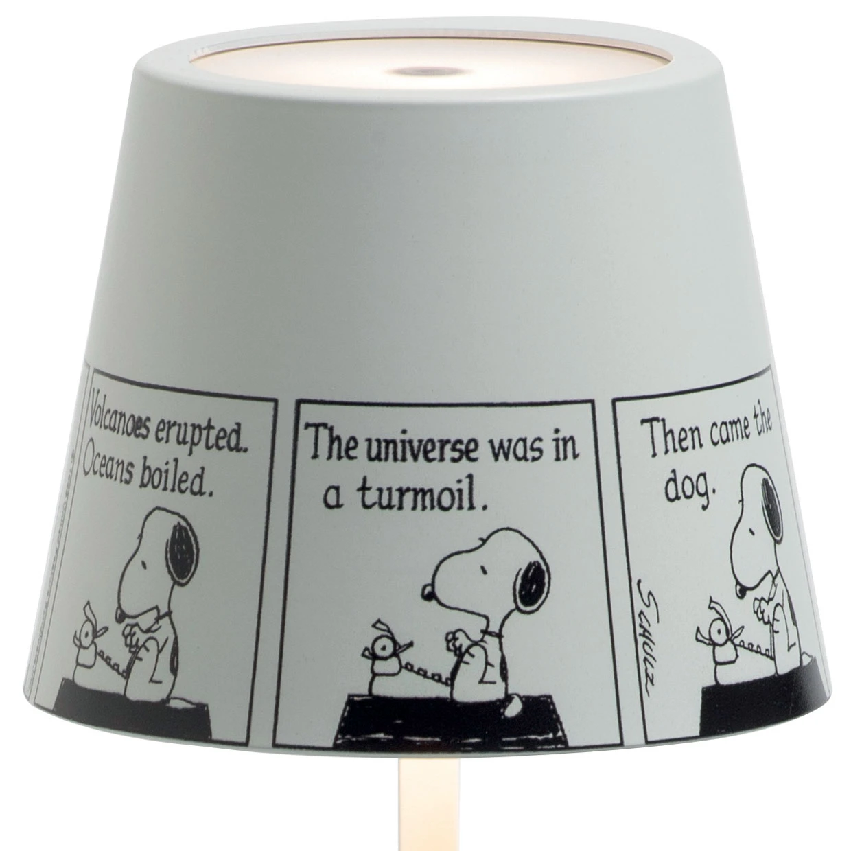 In addition to its charming design, the Poldina x Peanuts Table Lamp includes all the portable, versatile features of the Poldina series. The lamp is powered by a rechargeable battery and houses an integrated LED that can be toggled between 2700K and 3000K color temperatures. A built-in 0-100% dimmer allows the user to set the perfect lighting level for any setting.
