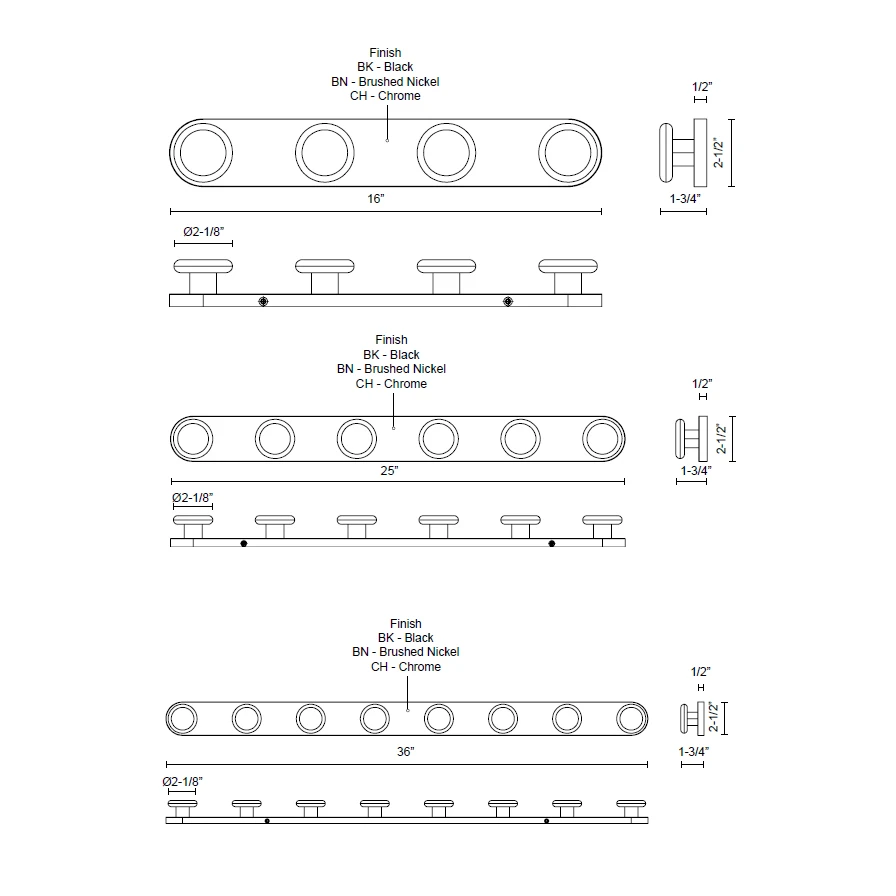 | Finish | Black, Brushed Nickel, Chrome |