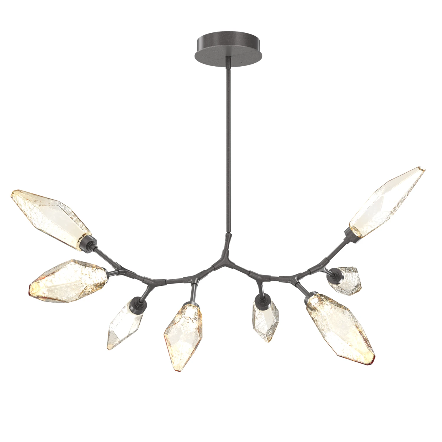 The Rock Crystal Modern Branch Chandelier offers a balance of traditional and modern design by capturing the beauty of artisan blown glass and pairing it with an aluminum frame. Place this eye catching beauty where ever you want added glam.
