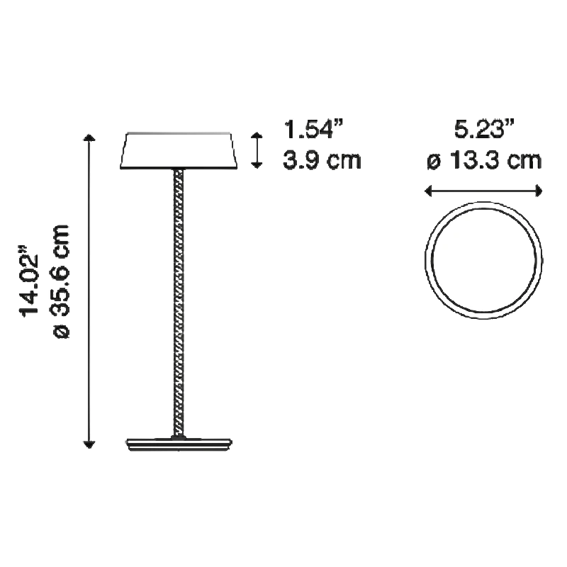 The Rod Rechargeable Table Lamp was inspired by the form and texture of construction rod or rebar, which is reflected in the lamp’s stem. Rod features a built-in rechargeable battery, allowing the lamp to be used wherever its light is needed. A button on top of the lamp controls the built-in three step dimmer to set the brightness level. Portable and rechargeable via a C-type-USB port, which is protected by a rubber cap. IP54 rated for outdoor locations.