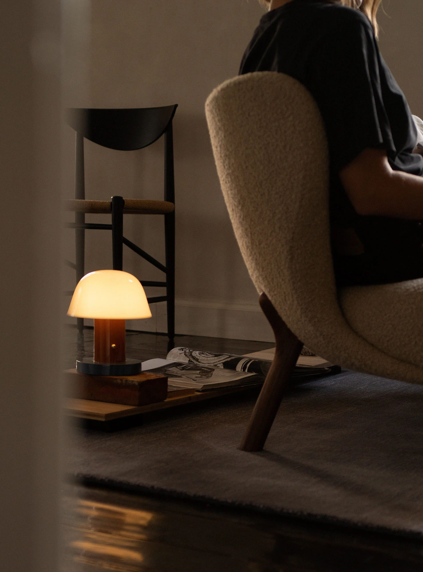 Seta, Spanish for mushroom, aptly describes the quirky Setago JH27 Portable Table Lamp and its petite mushroom-like proportions. This cordless lamp goes anywhere you go, accenting your space with its nature-inspired finishes.