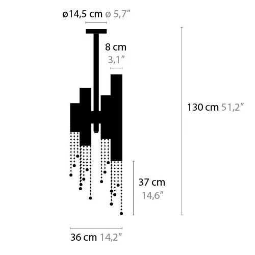 Sexy Crystals Up / Down Light Chandelier is available with crystals, Swarovski Strass crystals, or plain cylinders with no crystals. Finish is available in Brilliant Brass, Satin Brass, Chrome, Bronze or Matte Nickel. Eight 50 watt, 120 volt MR16 type GU10 base Halogen lamps are required but not included. Features four cylinders with bi-directional light distribution. 14.2 inch width x 14.6 inch height x 51.2 inch length.