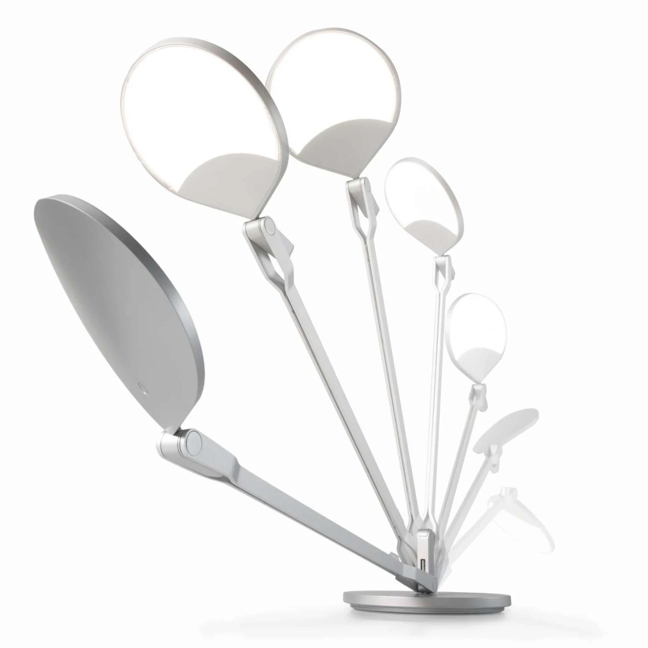 One of Koncept’s most flexible lights, the Splitty Desk Lamp is named after its unique joint design. Designers Kenneth and Edmund Ng perfected the diffused light source with hidden LEDs so that the lamp performs as a radiant ambient light as well as a functional task light. Charge your phone or other USB-compatible products with the built-in 1A USB port on the base. Splitty is controlled by the indented on/off button on the top of the LED head. Simply press and hold the button to control the brightness. Available in Silver, Matte White, Matte Grey, Matte Orange, Matte Leaf Green, Matte Pacific Blue, or Matte Black. Mounting options include standard table base, through table mount, grommet mount; one-piece desk clamp and two-piece desk clamp base only available in Silver, Matte Black, or Matte White; Qi wireless charging base only available in Silver or Matte Black. UL listed.