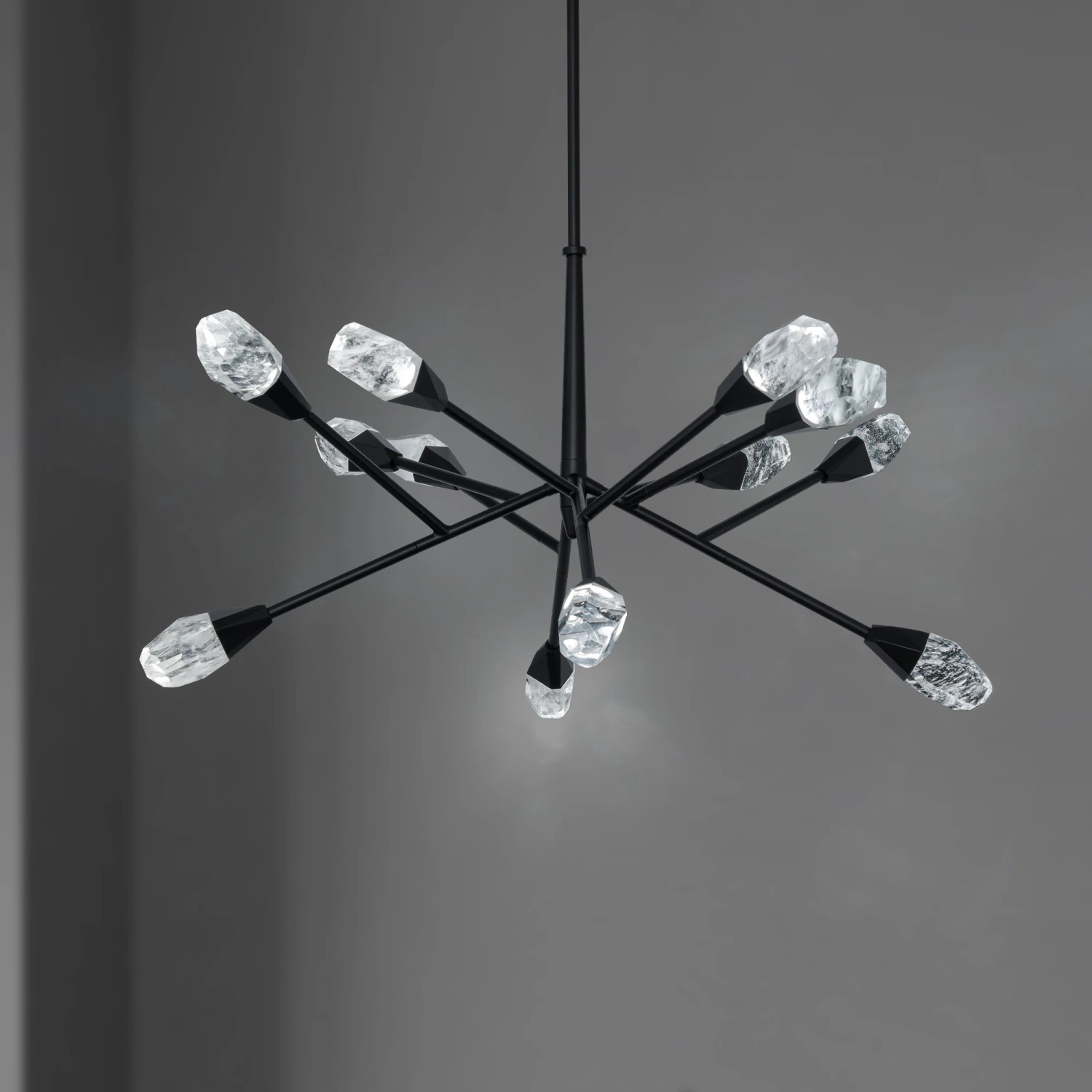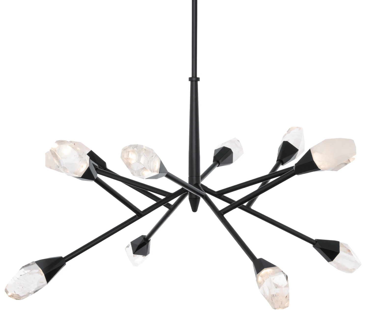 The Synapse Chandelier brings a bold beauty to your interior space. The individual arms a re placed in varying positions and are capped with organic crystals that cast warm shadows across your room.