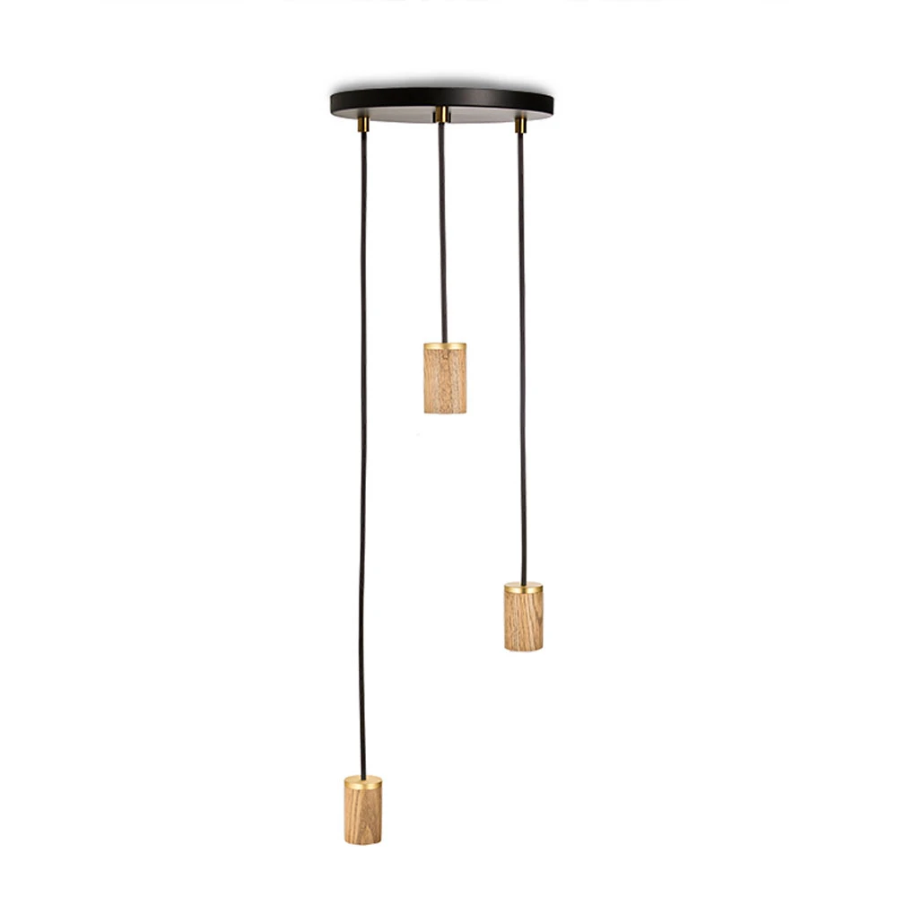 The Bare Triple Multi Light Pendant delivers perfect light with tactile function. This modern piece is designed for life on the go, perfect in virtually any room style. Use with a a variety of medium base bulbs, up to 60 watts, not included to make this piece your own. Features Graphite, Brass, Walnut, or Oak lamp holders with a White or Black canopy and Black cables. Canopy: 9.84 inch diameter. UL and cUL listed. Note: Bulbs sold separately.
