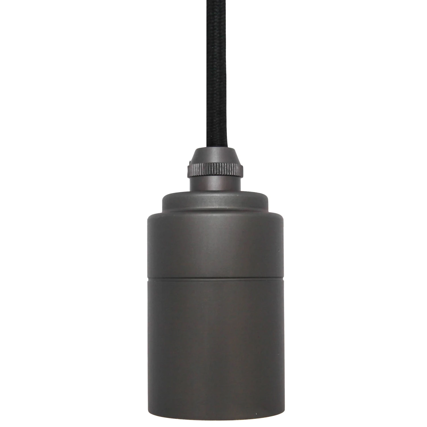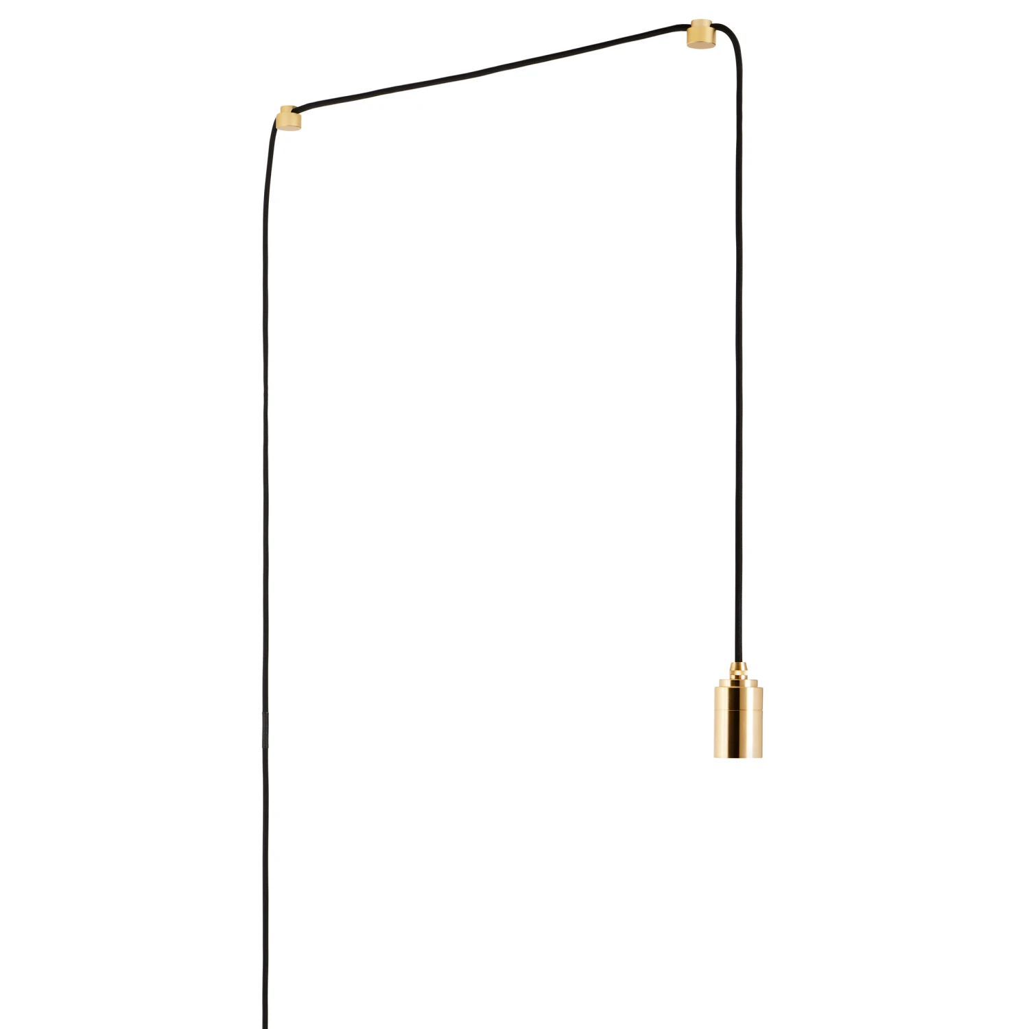The Plug-In Pendant by Tala offers a flexible, minimalist lighting option without the need for hardwired installation. A Graphite anodized aluminum or Brass socket is paired with an elongated black cord and nodes in a coordinating finish to suspend the fixture from the ceiling. An inline dimmer switch is included on the cord to adjust the light output.