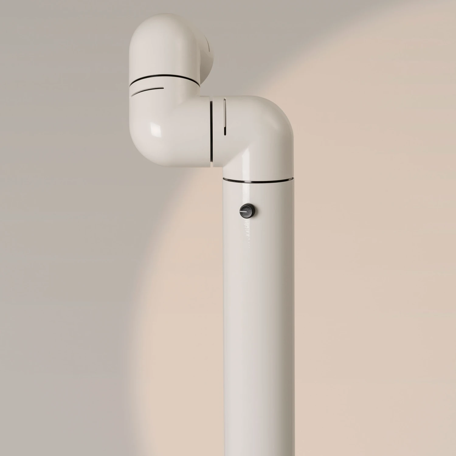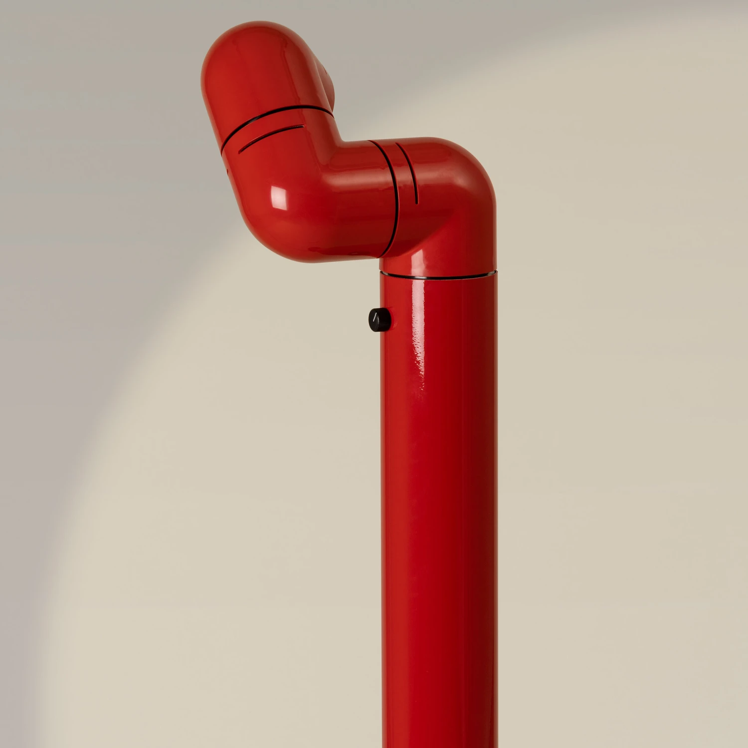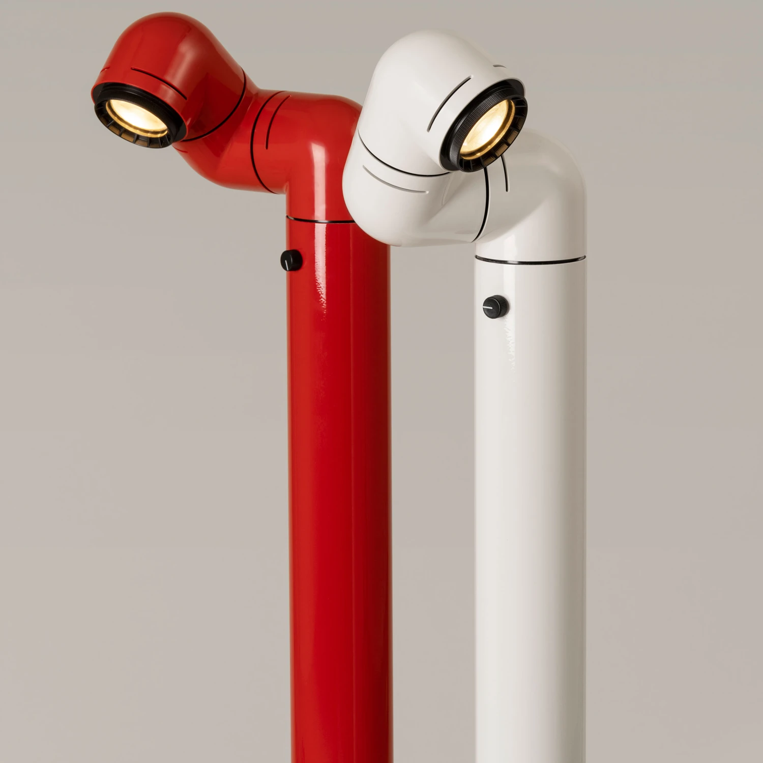 The Tatu Floor lamp retains the original design’s retro charm, with a cylindrical base topped by a series of bends that allow the light source to be rotated and angled. A moveable converging lens allows the focal length to be adjusted, ensuring the right amount of light is directed precisely where it is needed.