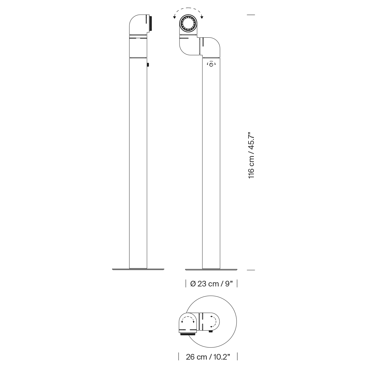 Andre Ricard was inspired to create the original Tatu Lamp on a transoceanic flight by the directional reading lights of passenger airplanes. Now Santa & Cole has updated this classic mid-century design as a floor lamp for the modern age with an LED light source and integrated optical adjustment on column. On/off switch on cord.