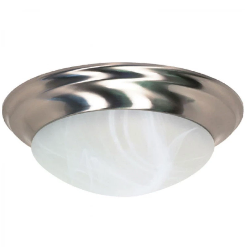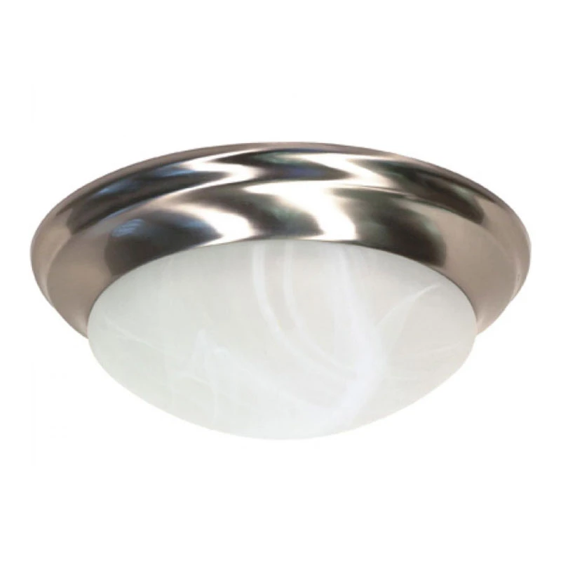 The Twist and Lock Ceiling Light features an Alabaster dome shade. Available in three sizes with a Brushed Nickel or Old bronze finish. Includes one, two or three medium base light sockets (bulbs not included). Damp location. UL listed.