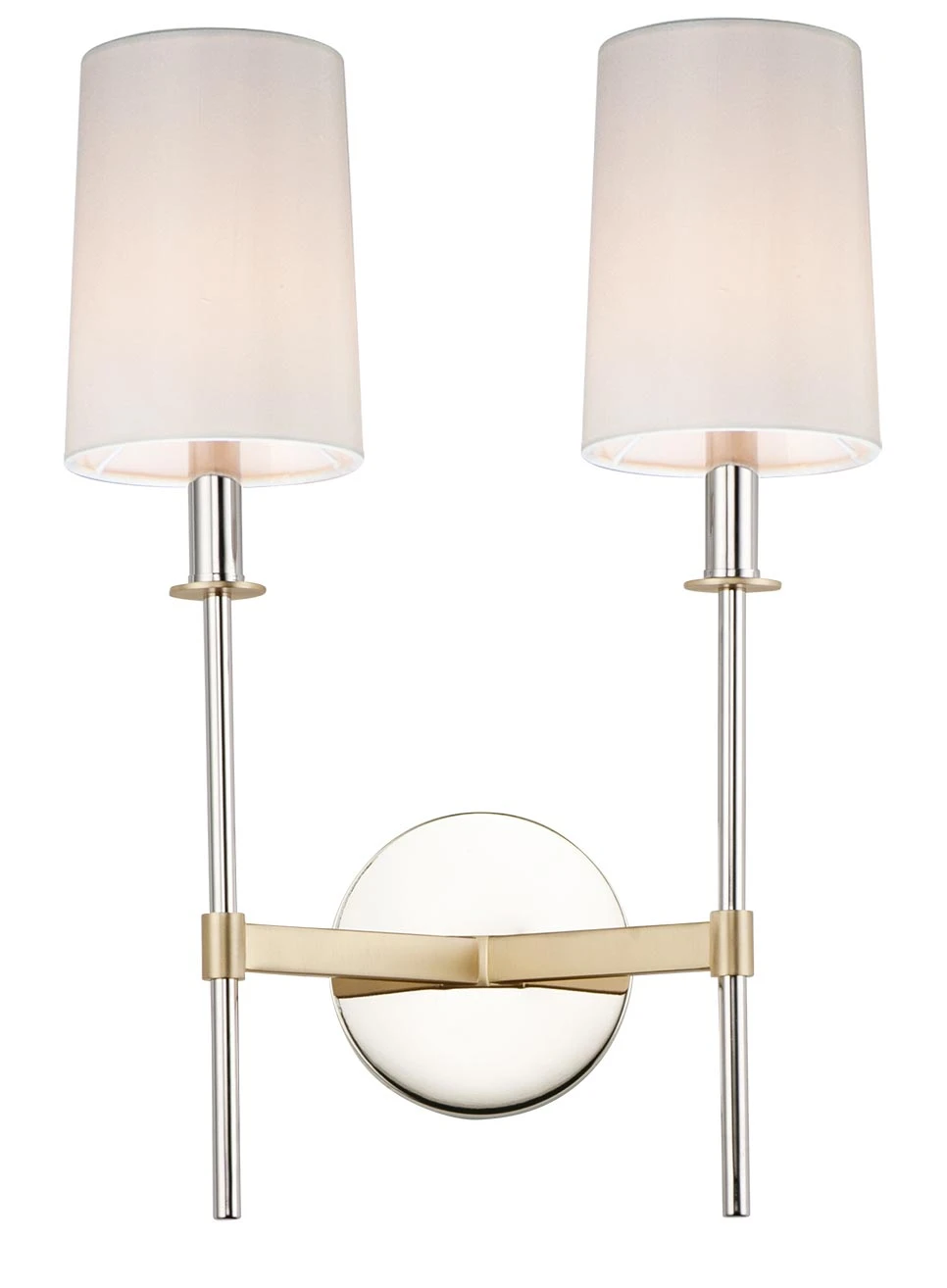 The Uptown Wall Sconce’s Polished Nickel and soft Satin Brass finish combined with elongated candle sticks creates an instant air of sophistication.Topped with tall Off-White fabric shades, the Uptown’s classic heritage and simplistic design make this fixture suitable for contemporary living. Available in One or Two light models. Dry Location Rated. UL Listed.