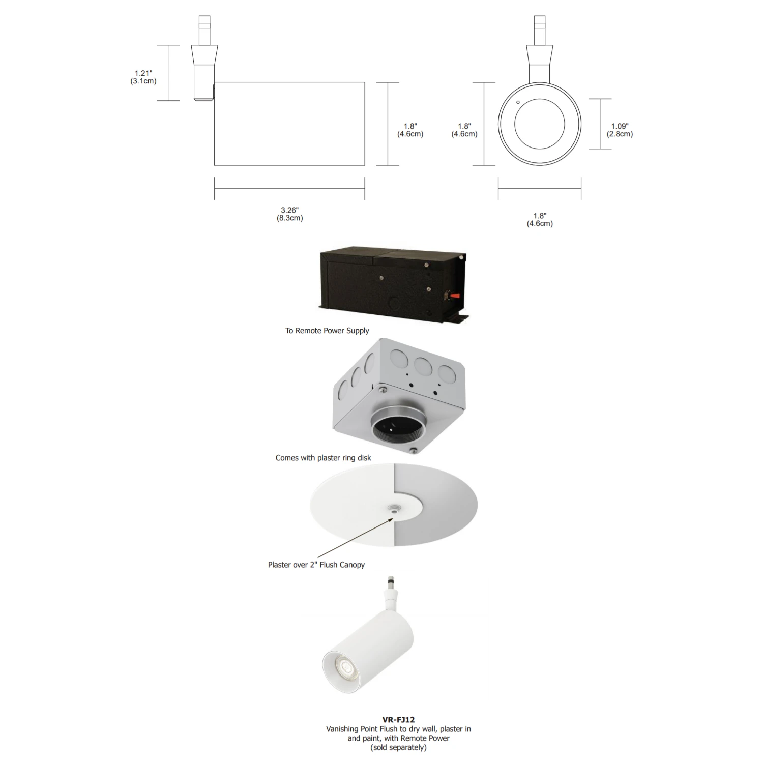 The Vanishing Point Drywall Plaster-In Fast Jack 12V Piston Head with integrated LED features no visible canopy line – just the small (0.5) inch point of connection where the fixture stem disappears into the ceiling. Available in two color temperatures with a field adjustable single optical reflector in 15, 25, 35 or 45 degree beam angle options. Die cast aluminum with finish in White or Black. 90 degree tilt/360 degree rotation. ETL listed. Title 24 compliant.