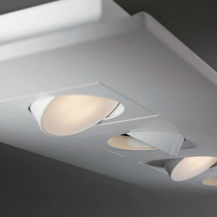 The sleek and minimal Venue LED Surface Mount features a White finish with modular LED lights which adjust to change direction of light emission for a custom lighting application.
