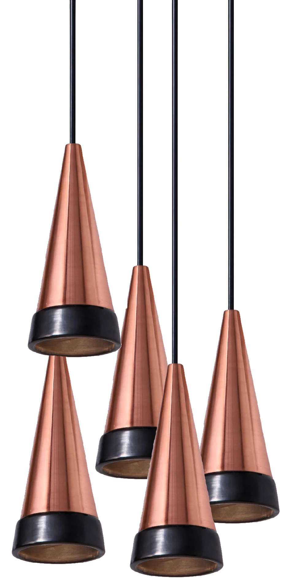 The Vitrif Round Multi Light Pendant combines Barro Negro and copper to create this pure geometrical form. The concept of craft and with an industrial material brings a contemporary look. Vitrif has a timeless style which fits perfectly in any environment, creating a dramatic light cone. Available in 3, 5, 7,a nd 9 light options. Handcrafted in Mexico.